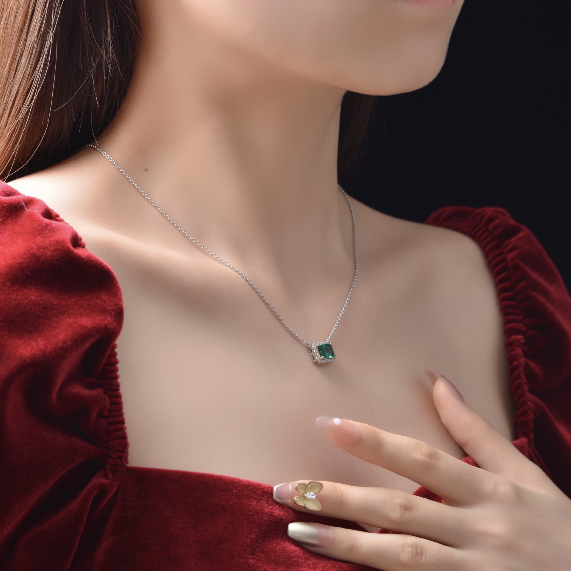 Ювелирные изделия Shipei, серебро S925, 1,5 карата, прямоугольное ожерелье с выращенным в Замбии изумрудом 6*8, легкий роскошный комплект из четырех предметов.