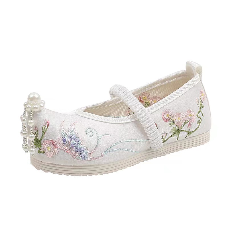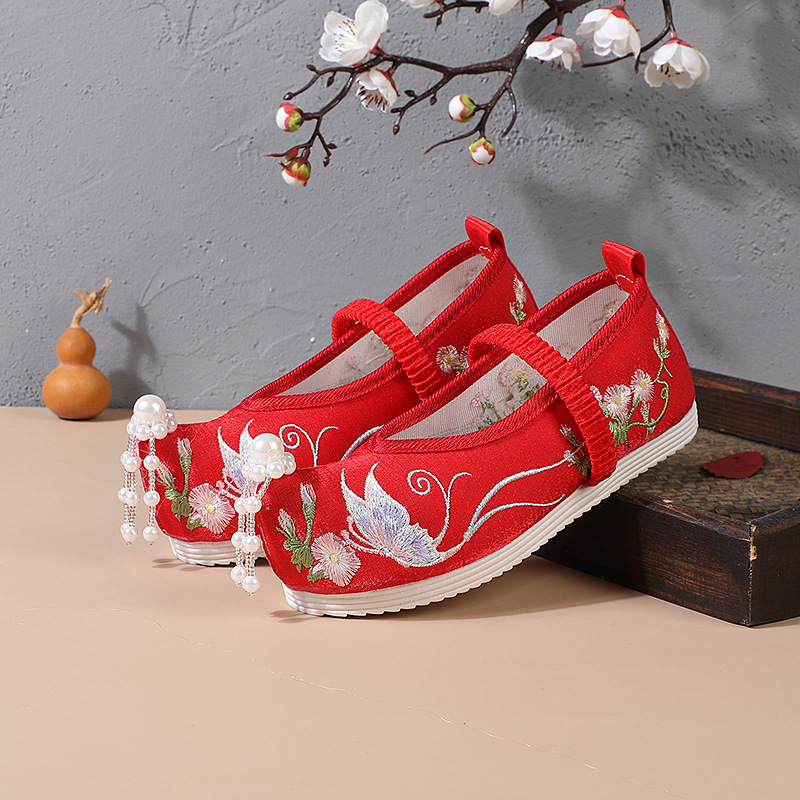 Детская обувь с вышивкой для девочек из старого Пекина, жемчужный цветок, бабочка, Тканевая обувь из ханьфу, студенческий старинный костюм, Настольная обувь в китайском стиле