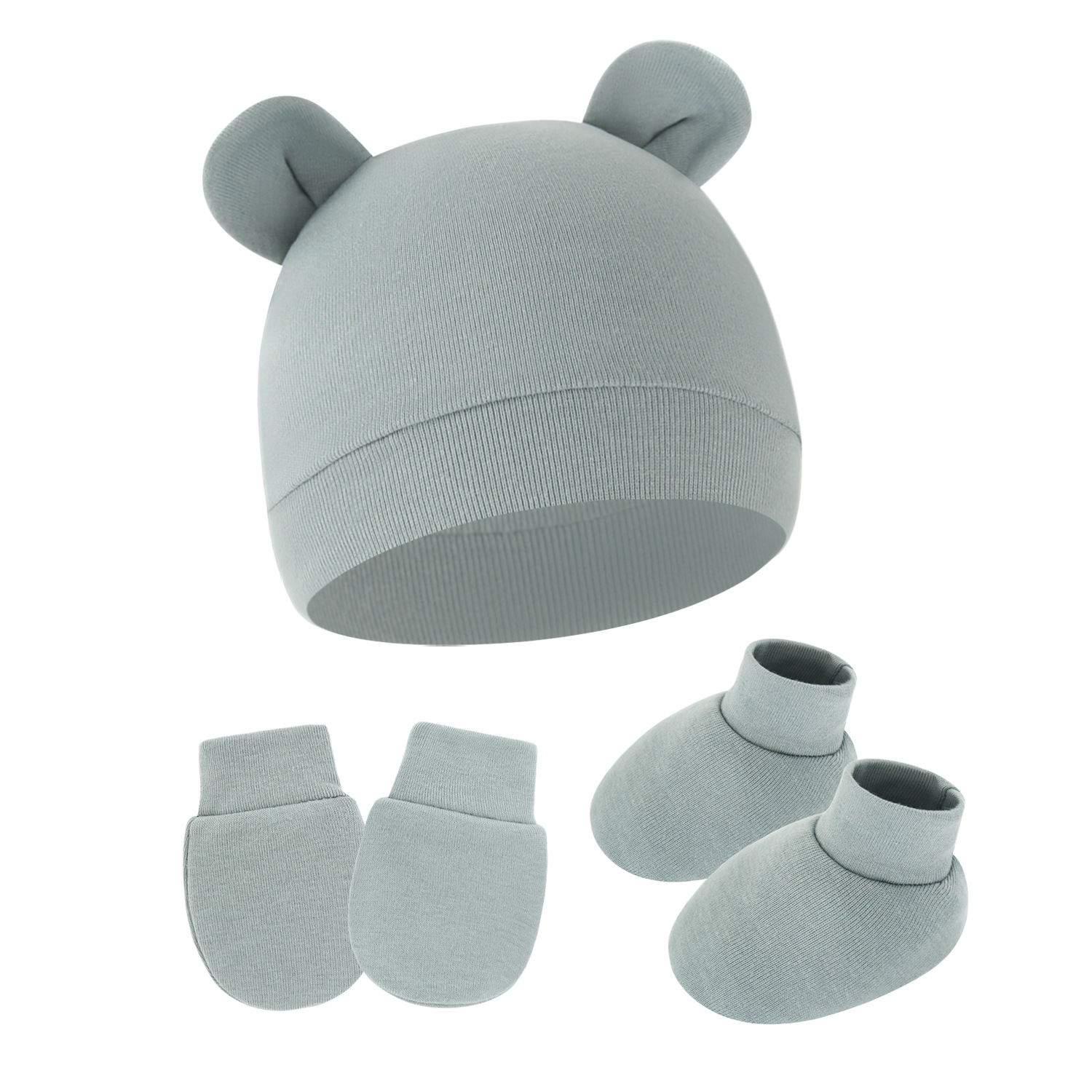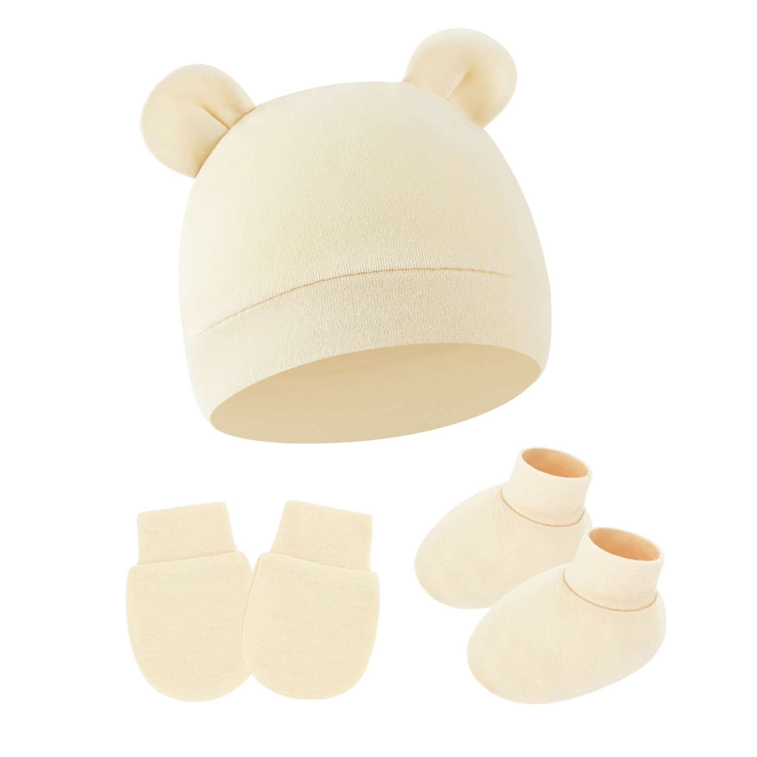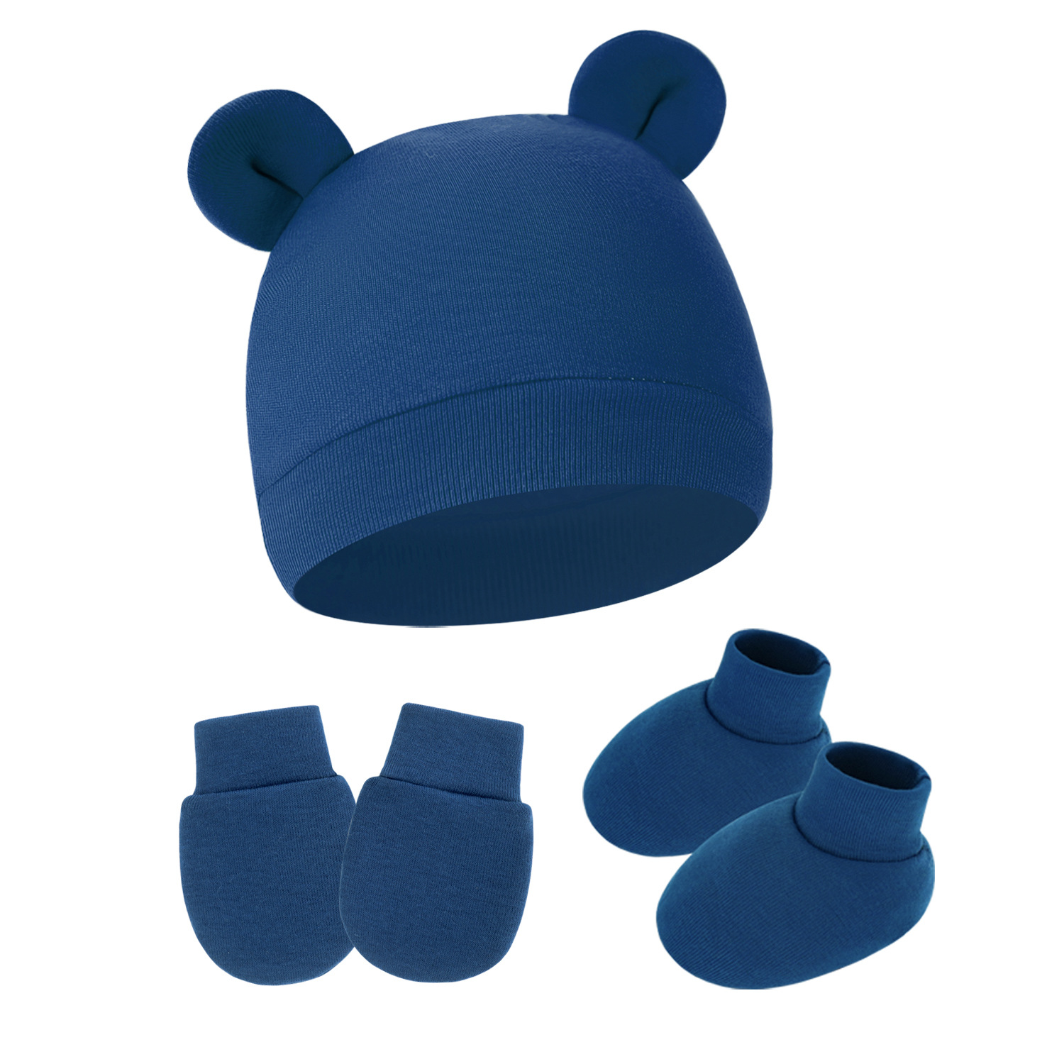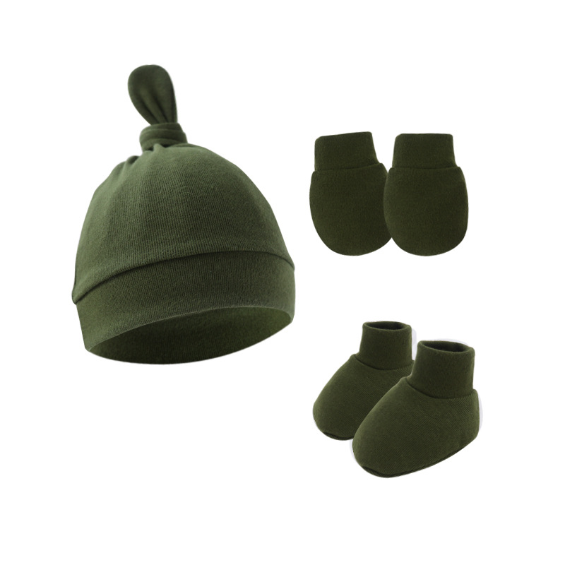 Внешняя торговля Чистый цвет детский пуловер шапка ухо детская шина шапка перчатки крышка ноги комплект из 3 предметов костюм 0-6 месяцев