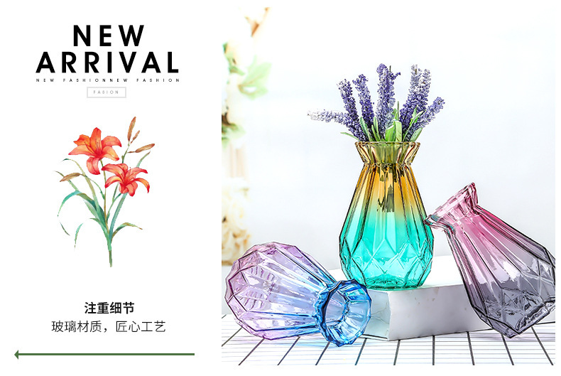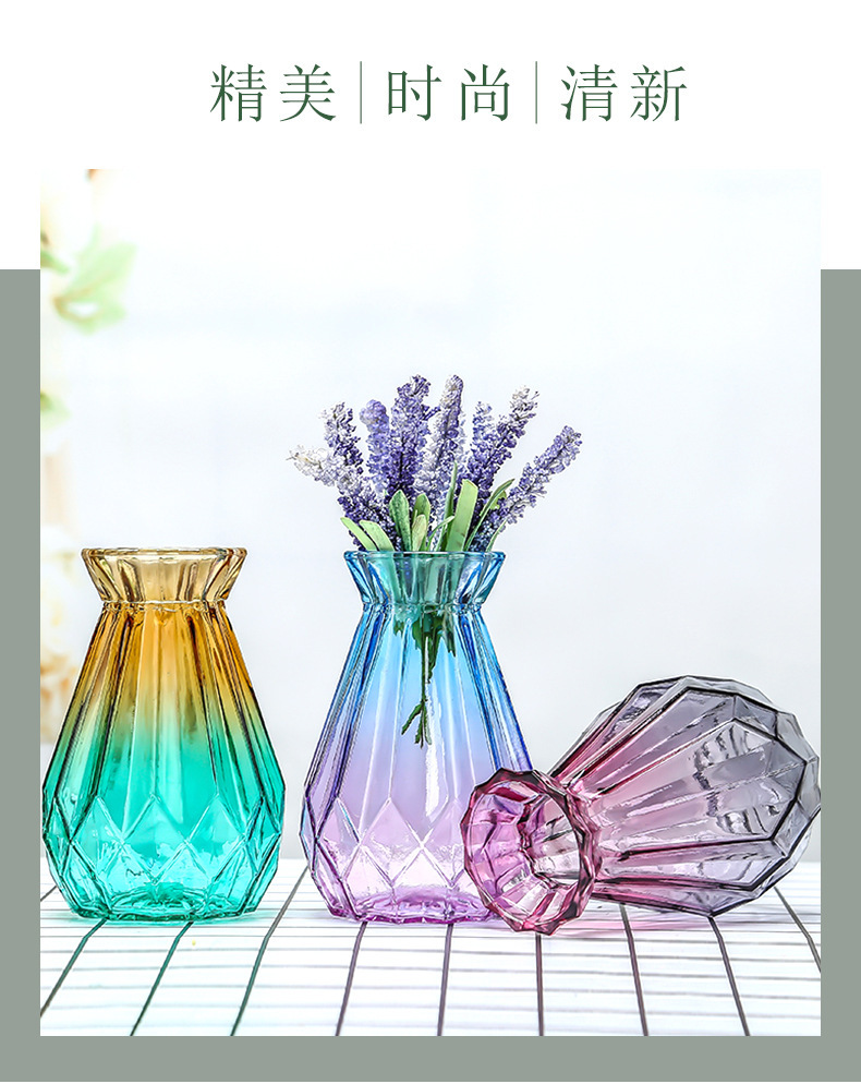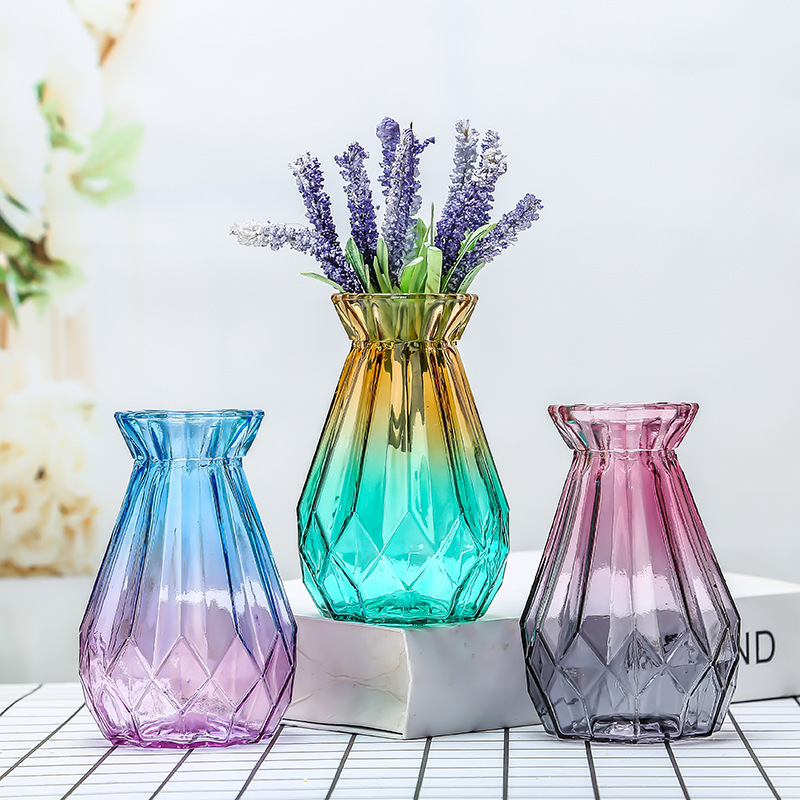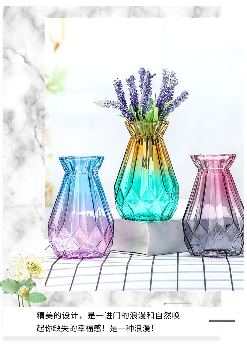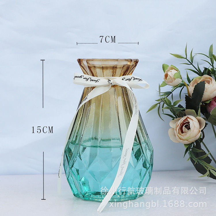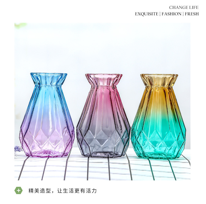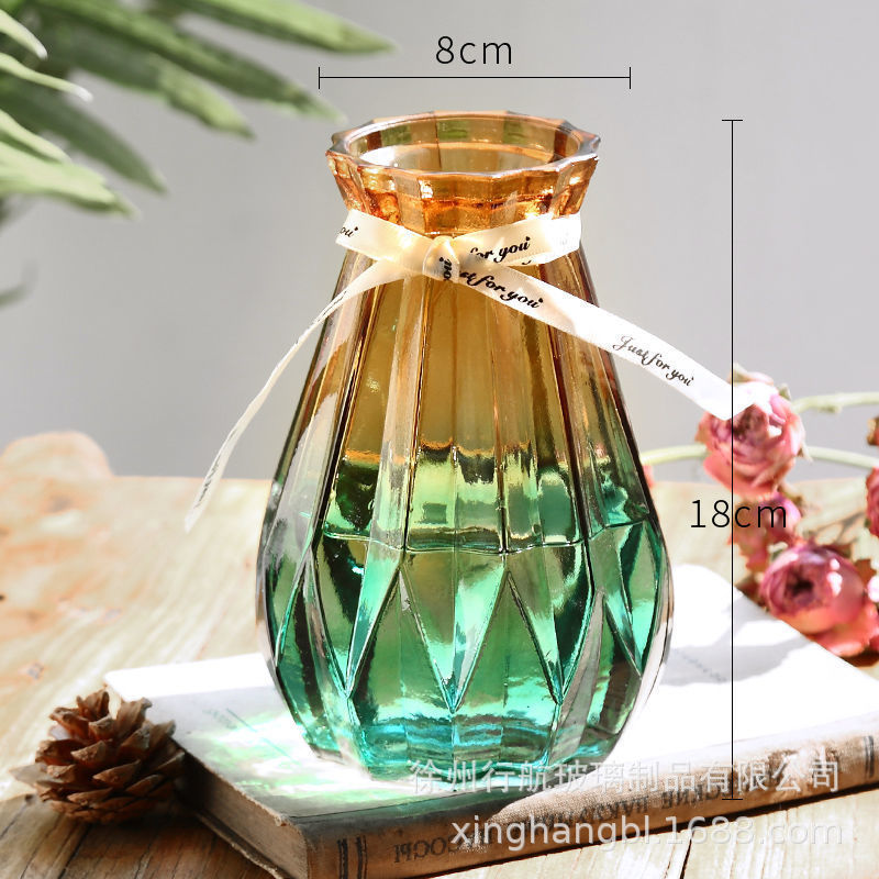 Стеклянная ваза в европейском стиле Градиентная ваза Стильная ваза для гостиной Обеденный стол Украшения Стеклянная ваза Богатая бамбуковая ваза для сушеных цветов