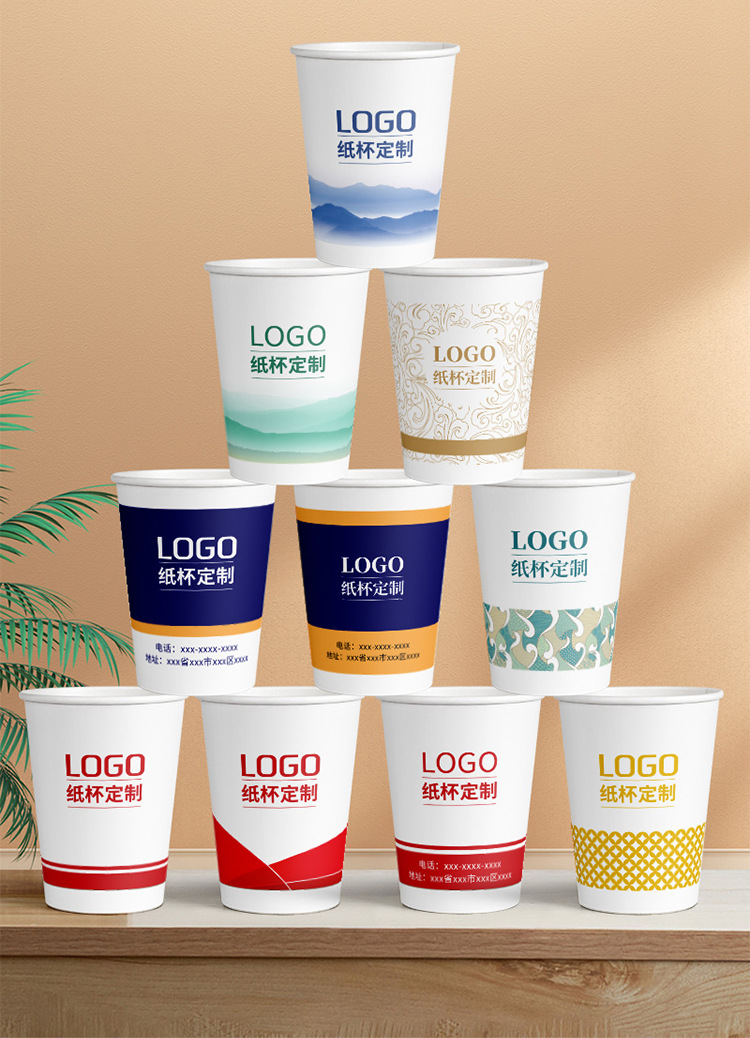 Одноразовый бумажный стаканчик на заказ, оптовая продажа, утолщенная коммерческая чашка для питья, рекламный белый бумажный стаканчик, полая чашка с индивидуальным логотипом