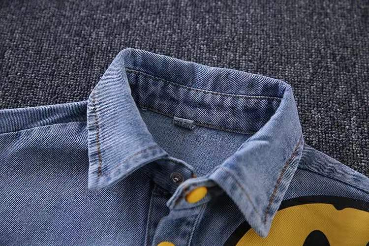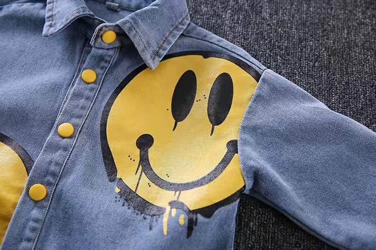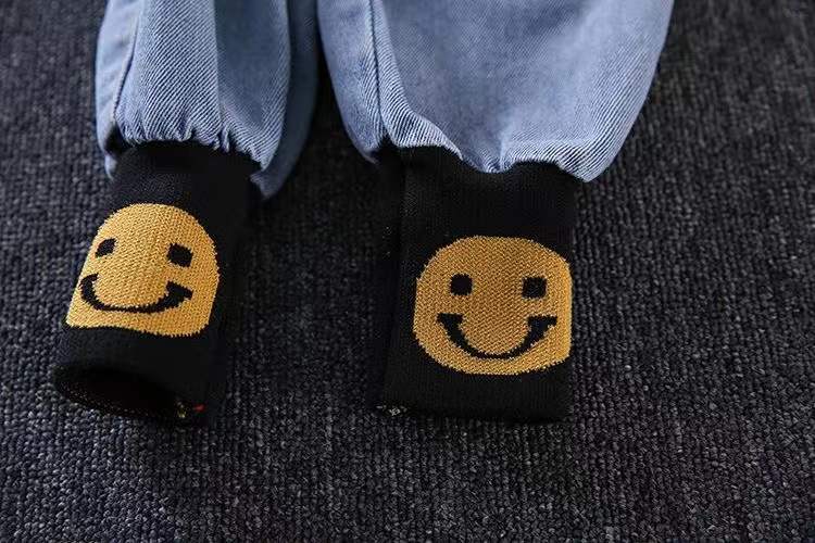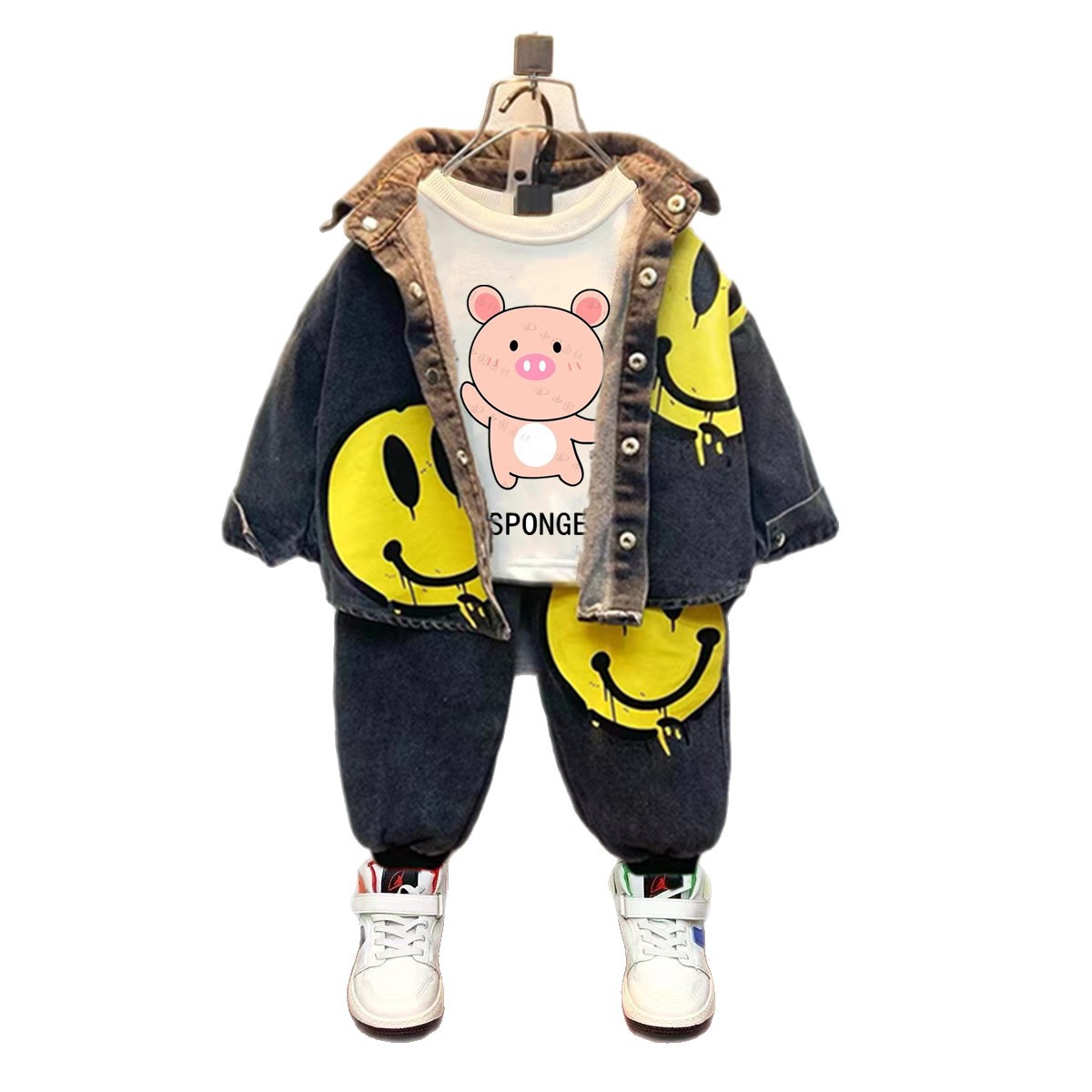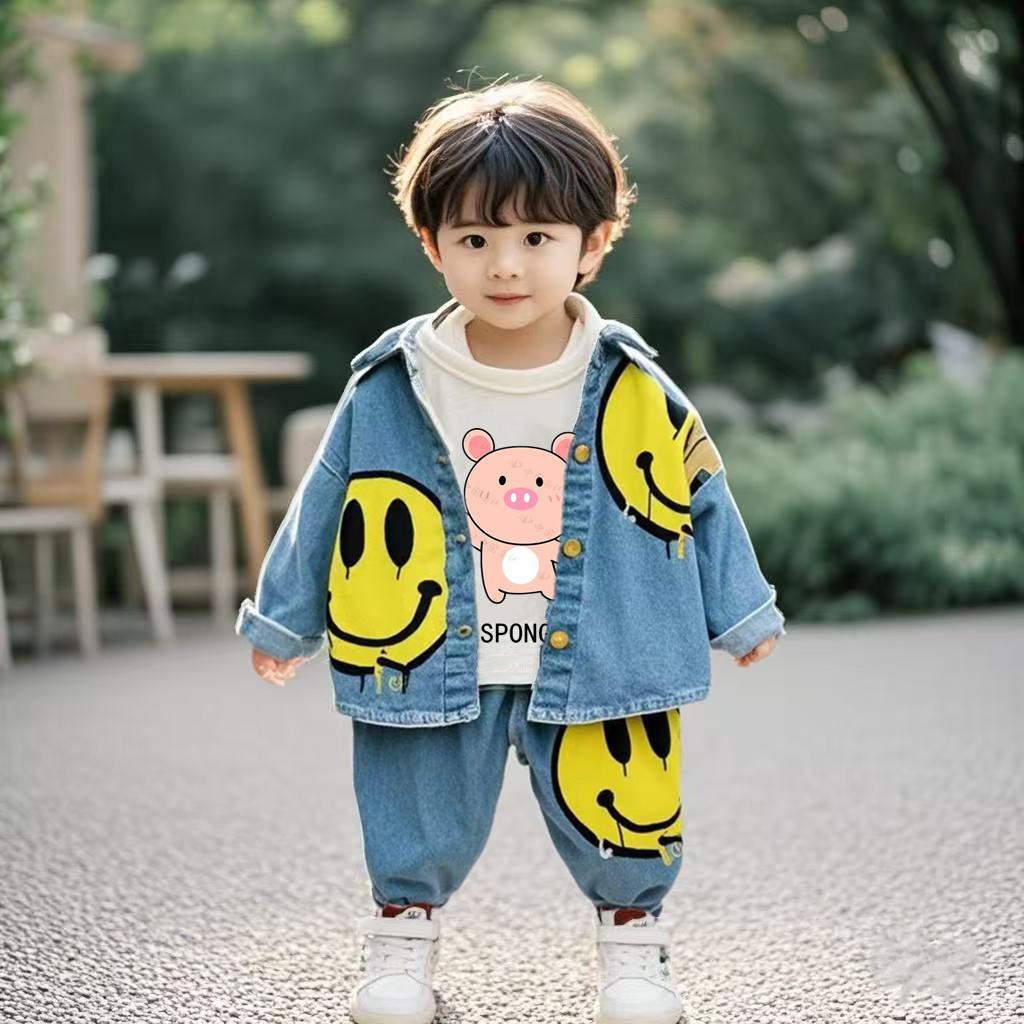 Повседневный костюм Красивый модный костюм для малышей на один год Весна и осень Джинсовая детская одежда со смайликом Комплект из трех предметов Модный для детей