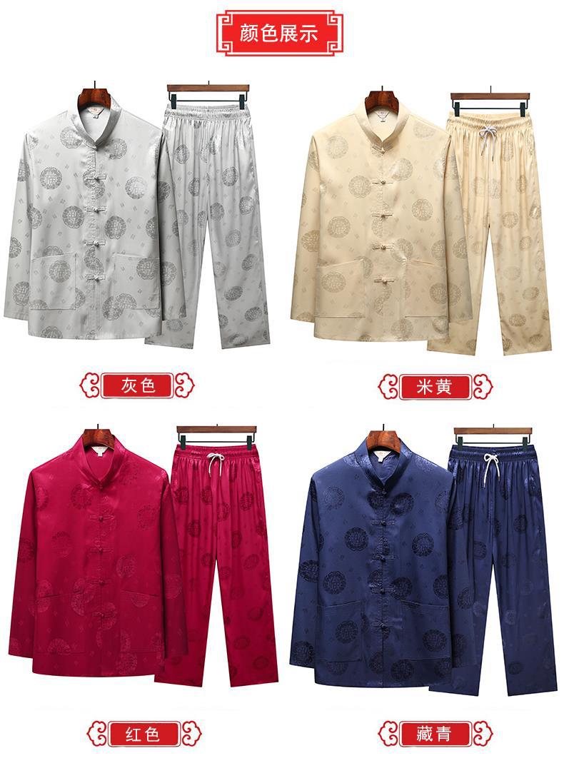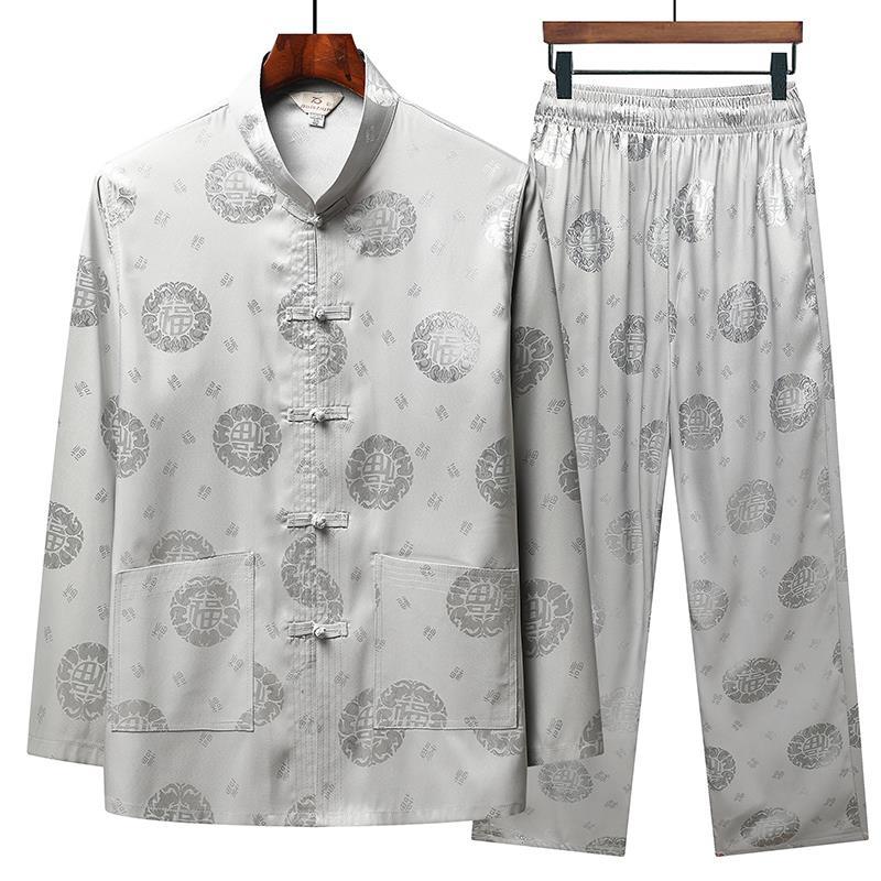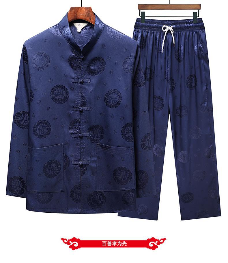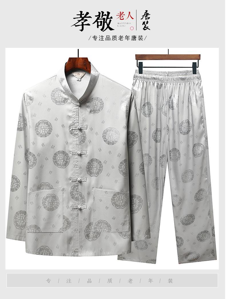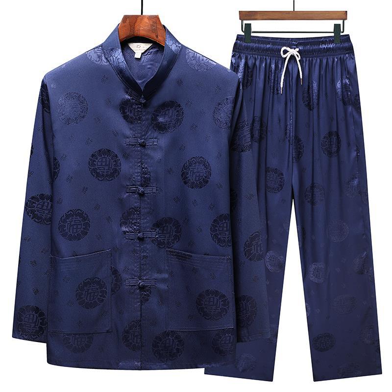 Осенний мужской костюм Тан среднего и пожилого возраста с длинным рукавом, костюм с пряжкой, атласный жаккард, удачный китайский ханьфу оптом