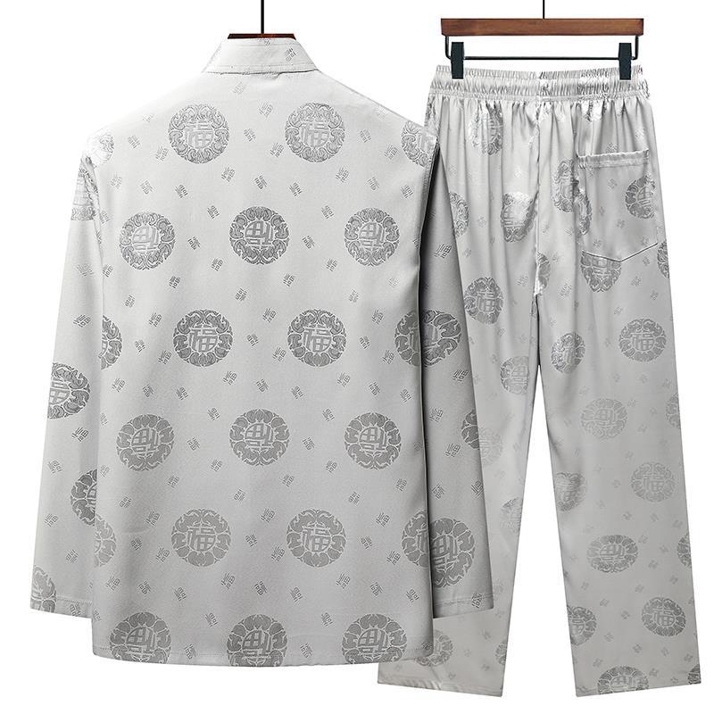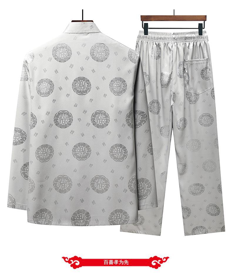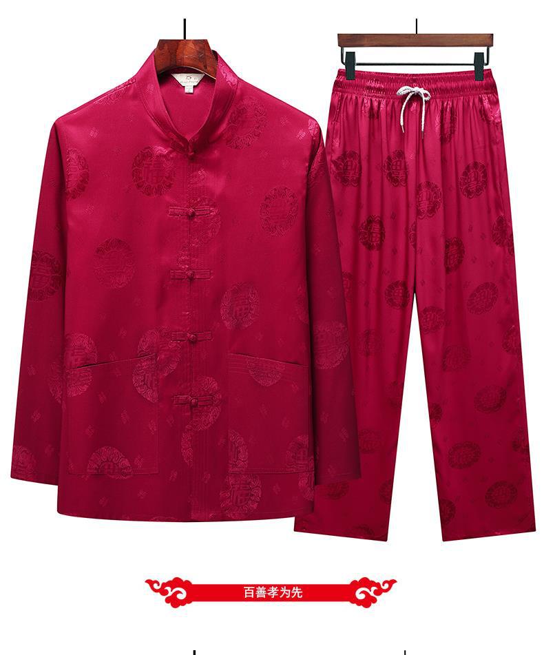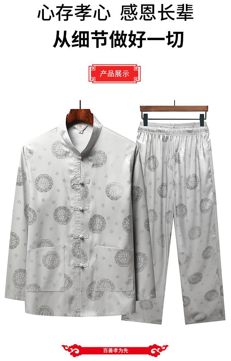 Осенний мужской костюм Тан среднего и пожилого возраста с длинным рукавом, костюм с пряжкой, атласный жаккард, удачный китайский ханьфу оптом