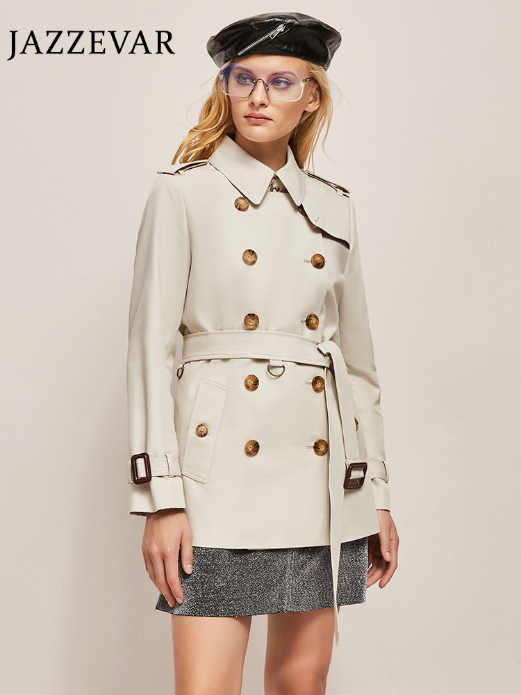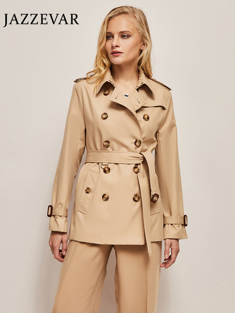 Jiazehua 2025 осень новый британский стиль высокого класса темперамент хаки женский B классический хепберн стиль пальто