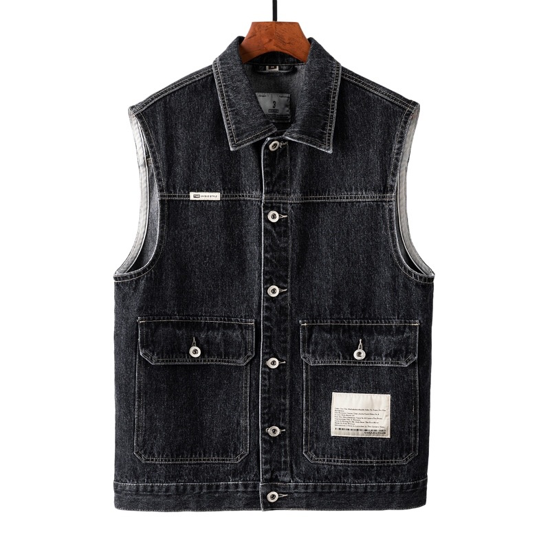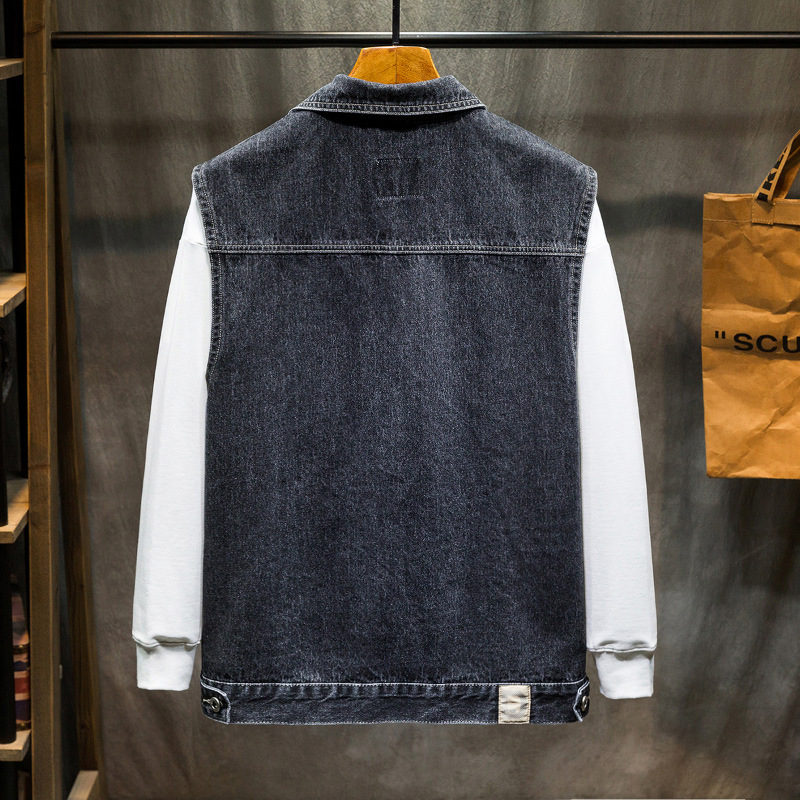 Мужская Осенняя новая оснастка больших размеров, джинсовый жилет, свободный, простая повседневная джинсовая куртка больших размеров