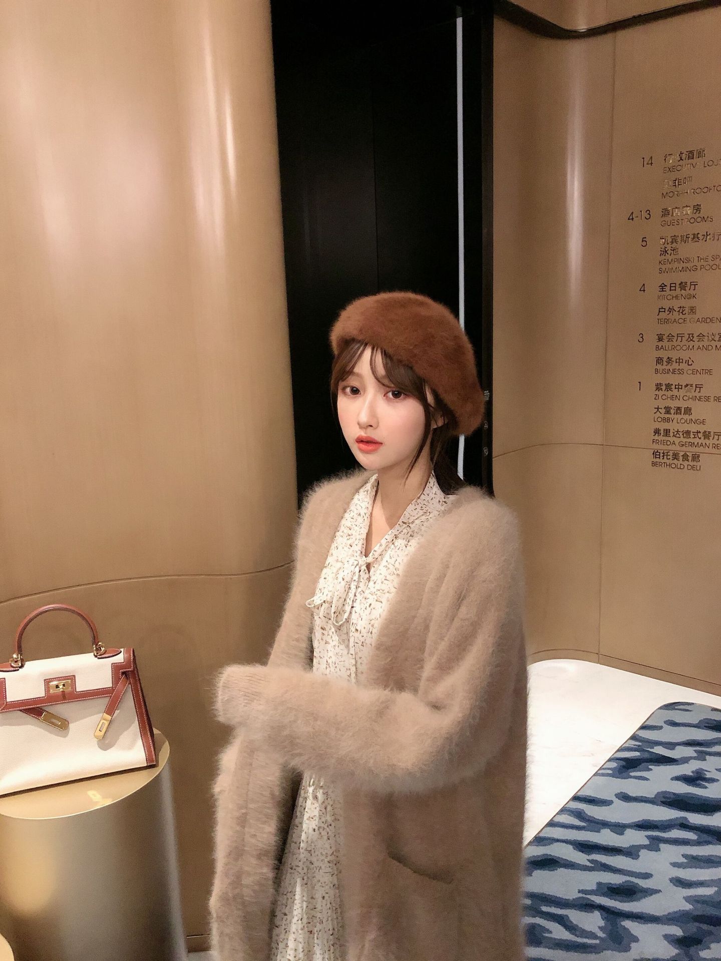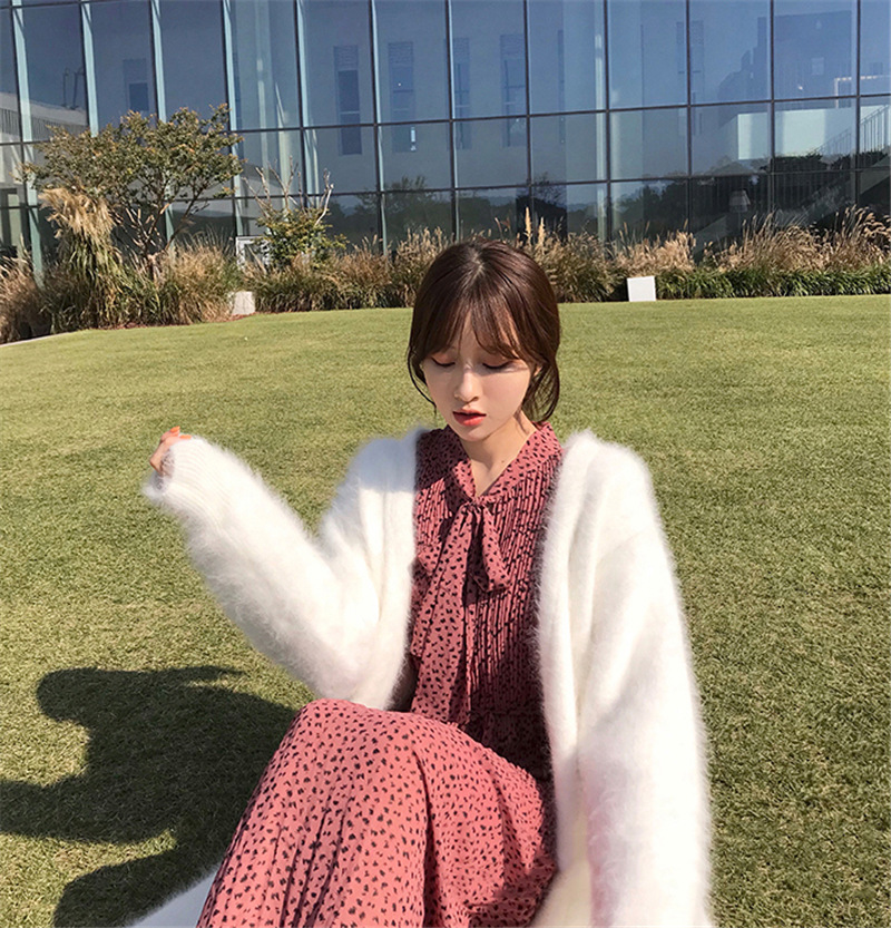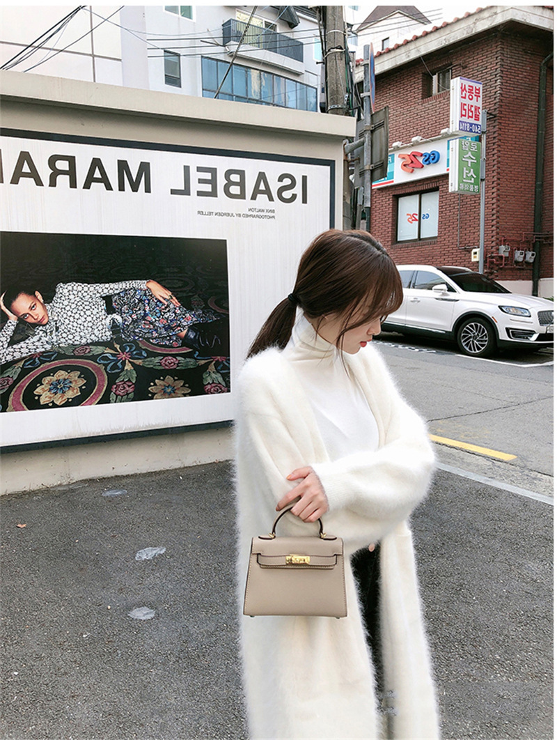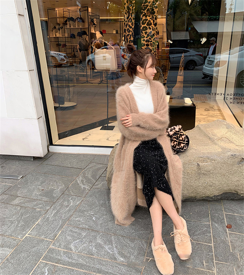 Новый длинный шерстяной норковый флисовый вязаный кардиган, Женский Однотонный свитер средней длины в ленивом стиле, пальто, осенне-зимний мех кролика выше колена