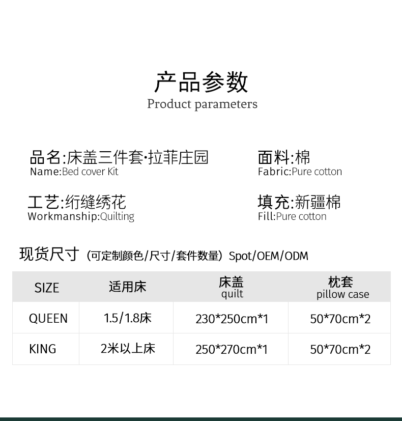 1,5- 1.8m комплект постельного белья из трех предметов: 1 покрывало 230*250 + 2 наволочки 50*70.; 1,5- 1.8m простыней, одинарное покрывало: 230*250 см.; Комплект постельного белья 2.0m из трех предметов: покрывало 250*270+50*70+5 наволочки 2 шт.; 2.0m простыни односпальная кровать: покрывало 250*270