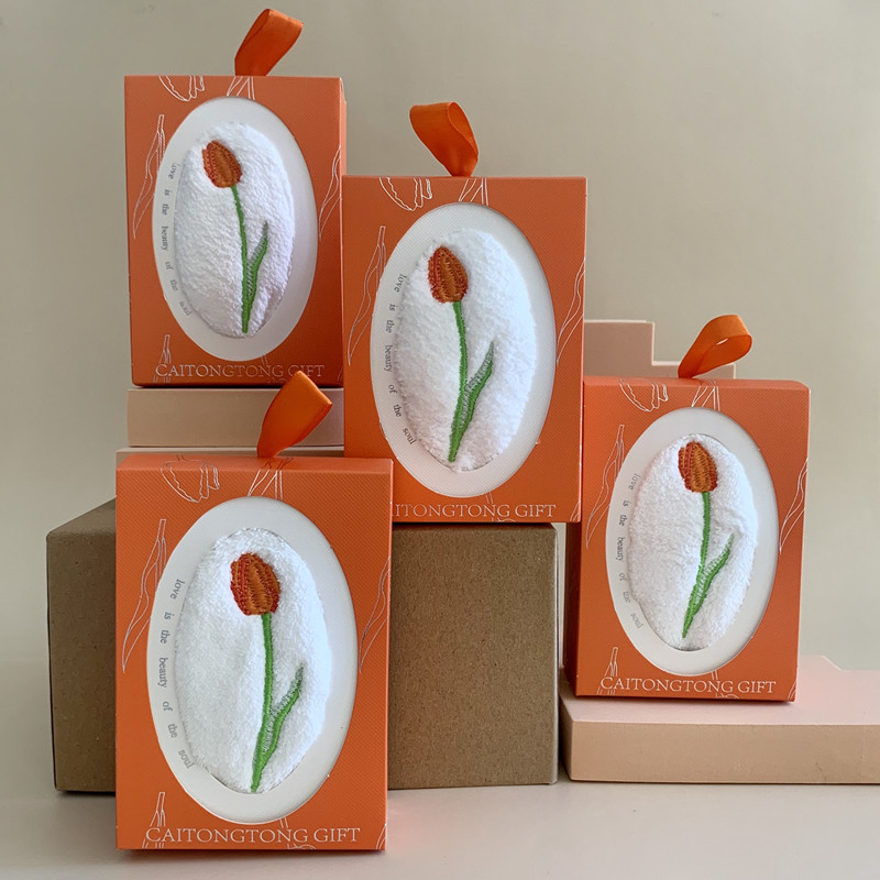 Подарок на День матери, тюльпан, вышитый коралловый бархат, свадебная подарочная коробка, сувенирное полотенце, креативный подарок, полотенце для рук