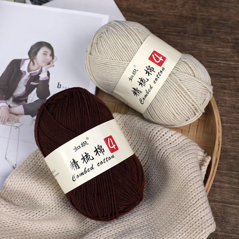 Детская шерсть 4 нити молочный хлопок средней толщины DIY чесаный хлопок вязаная крючком кукла нить материал сумка тканый шарф хлопковая нить