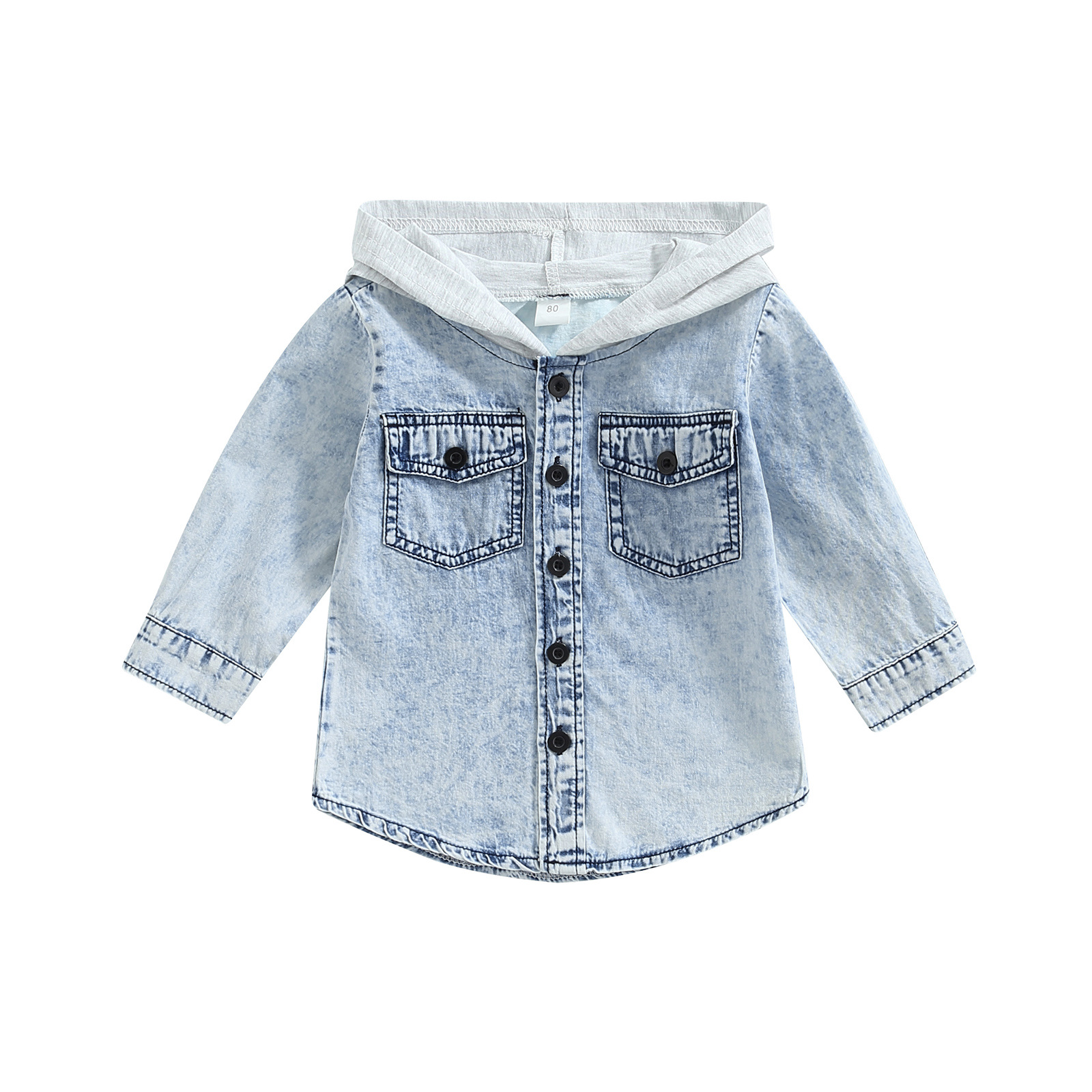 Осенняя новая детская одежда, модный однотонный джинсовый топ с капюшоном и длинными рукавами, джинсовое универсальное пальто для девочек