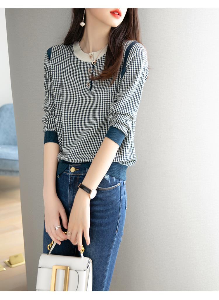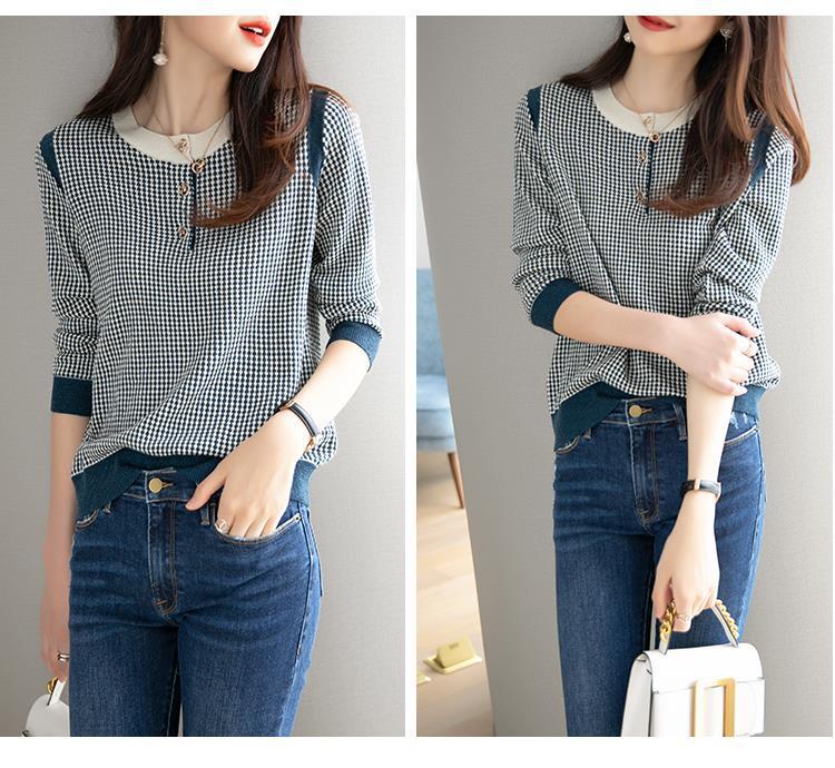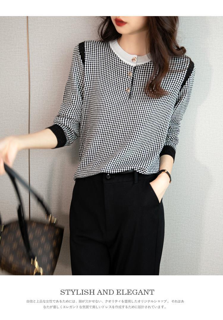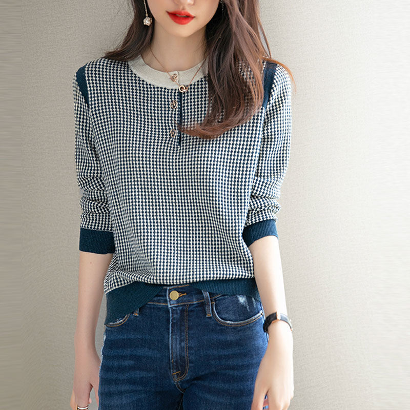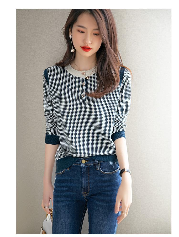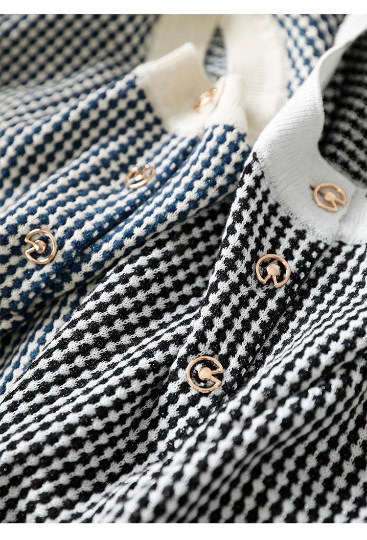 Приятный для кожи дышащий Осенний Топ, Женская Новинка 2022 года, свободный короткий свитер в западном стиле с длинными рукавами, черно-белая вязаная рубашка в клетку