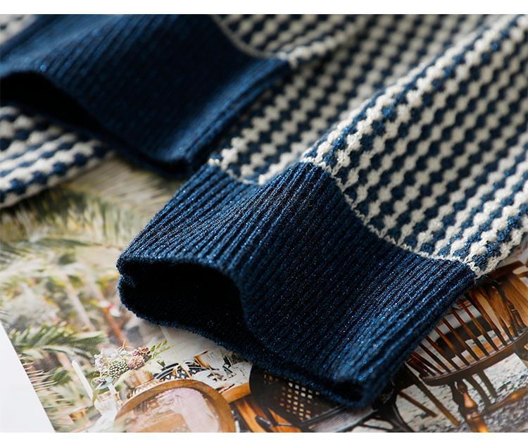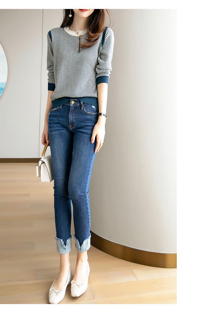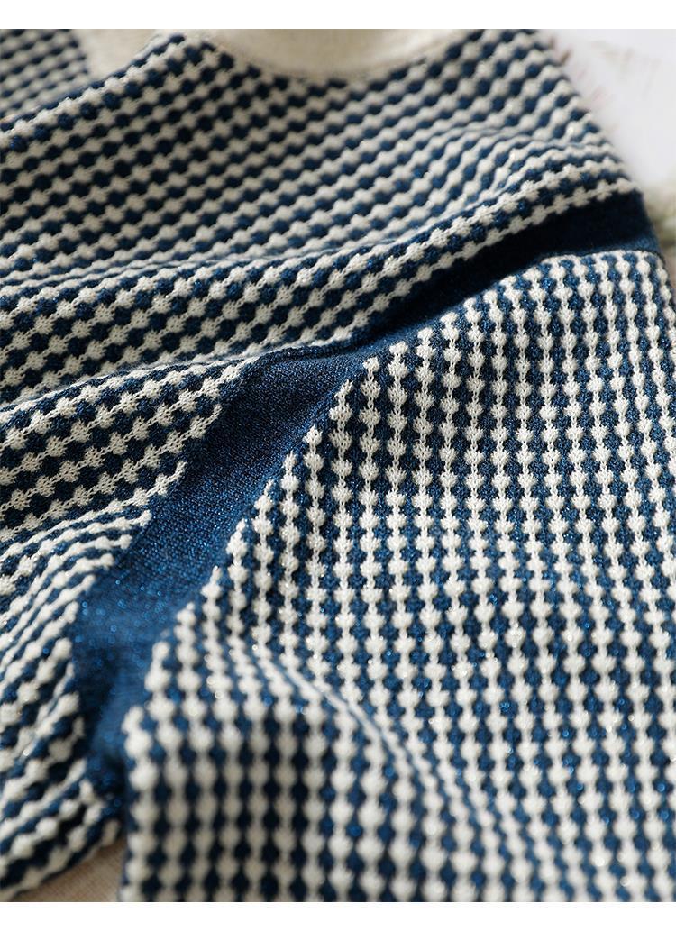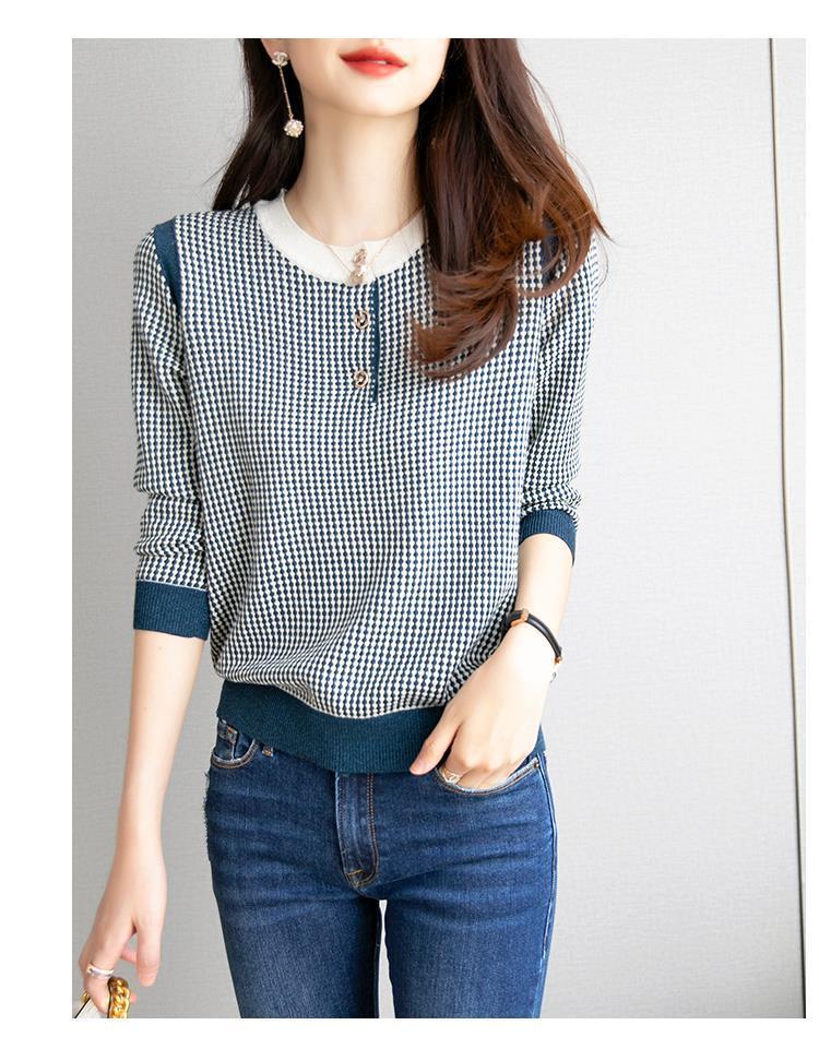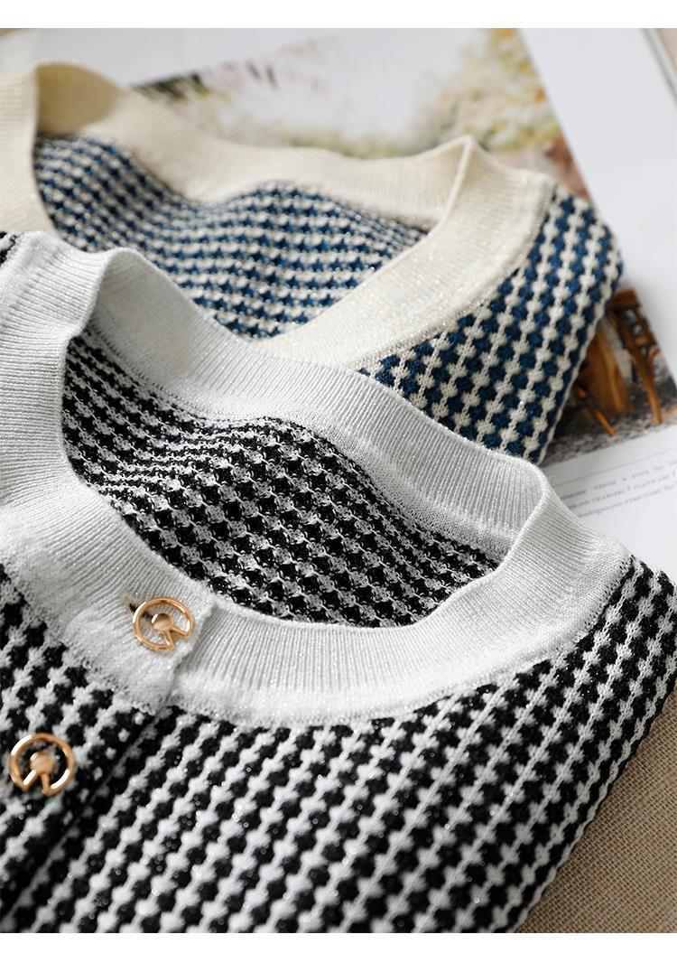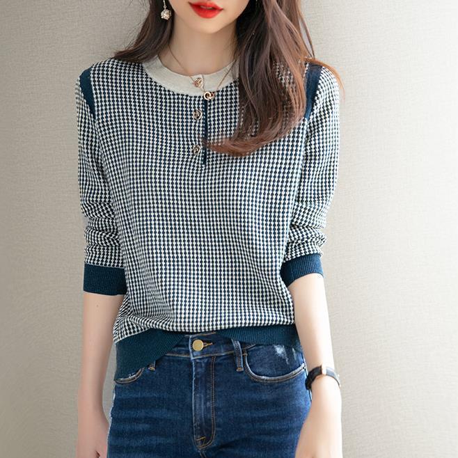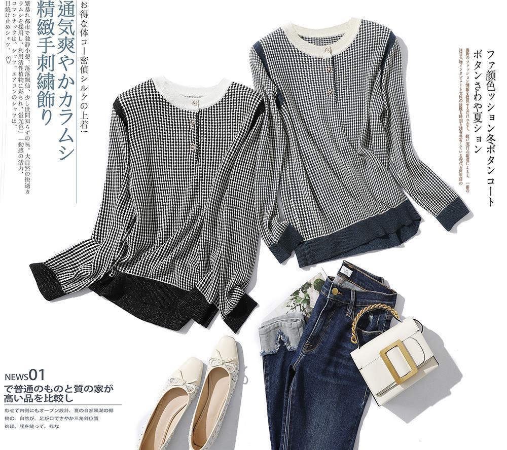 Приятный для кожи дышащий Осенний Топ, Женская Новинка 2022 года, свободный короткий свитер в западном стиле с длинными рукавами, черно-белая вязаная рубашка в клетку