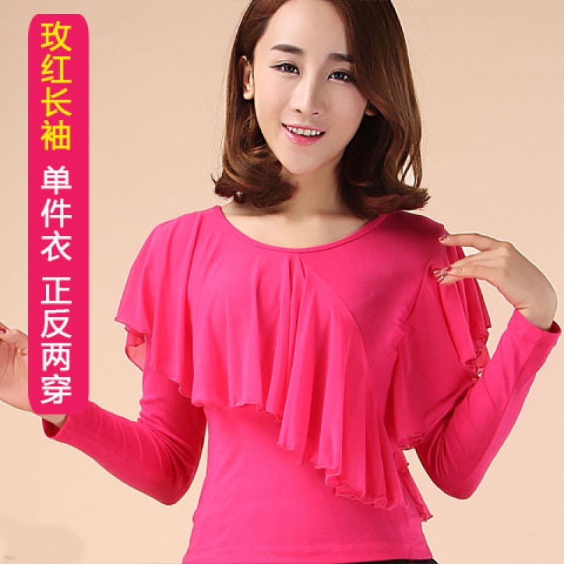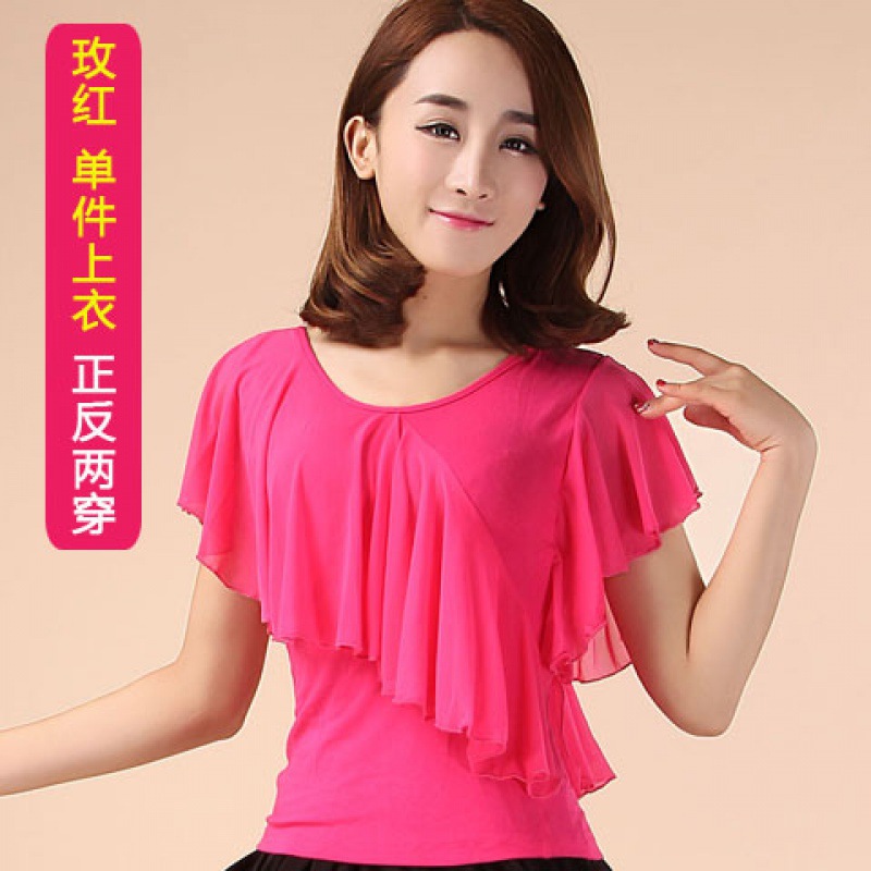 Топ для латинских танцев, новый весенне-летний костюм для квадратных танцев, Женский сетчатый костюм для выступлений с круглым вырезом, летний танцевальный костюм