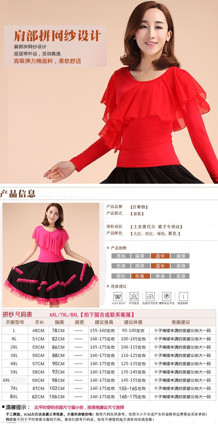 由于经营变动,百斯特与花竹蝶为同一产品,敬请知悉 新款升级设计,高档莫代尔面料,网纱大荷叶袖,舞出不一样的你 请亲们拍下注意:M是小码,码数偏小,建议按尺寸表格选择, 5XL/6XL/7XL/8XL 选择拍下留言颜色的选项,给卖家留言那里请留言颜色和短袖或者长袖,系统不好设置,麻烦了