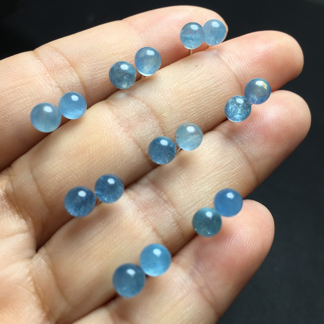 Серьги из натурального аквамарина с инкрустацией кристаллов, игла из серебра 925 пробы, одинарные бусины, оптовая продажа за границу.