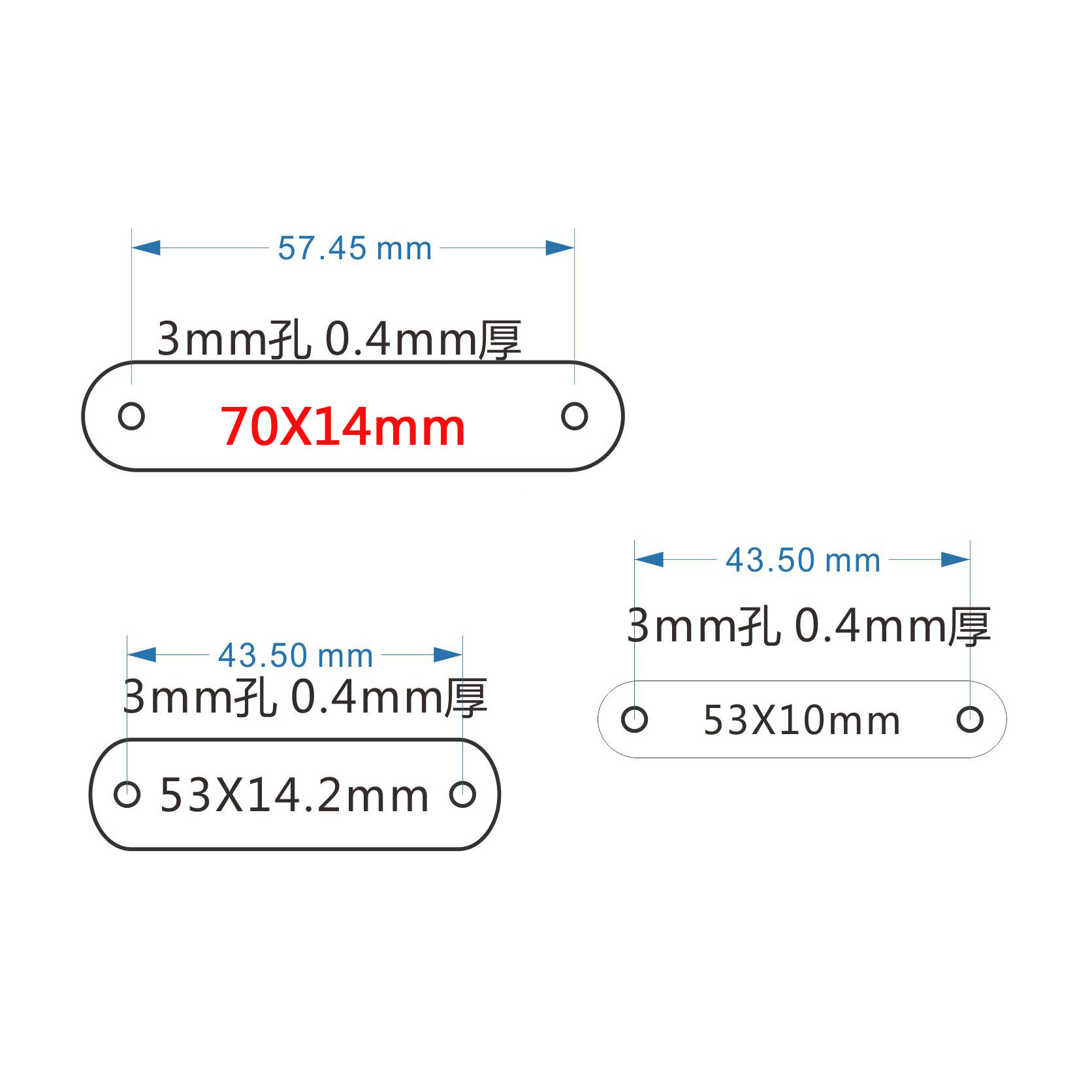 Длина и ширина 14X70-3мм (отверстие); Z узкий 10x53 3 мм (отверстие); K ширина 14,2x53-3 мм (отверстие)