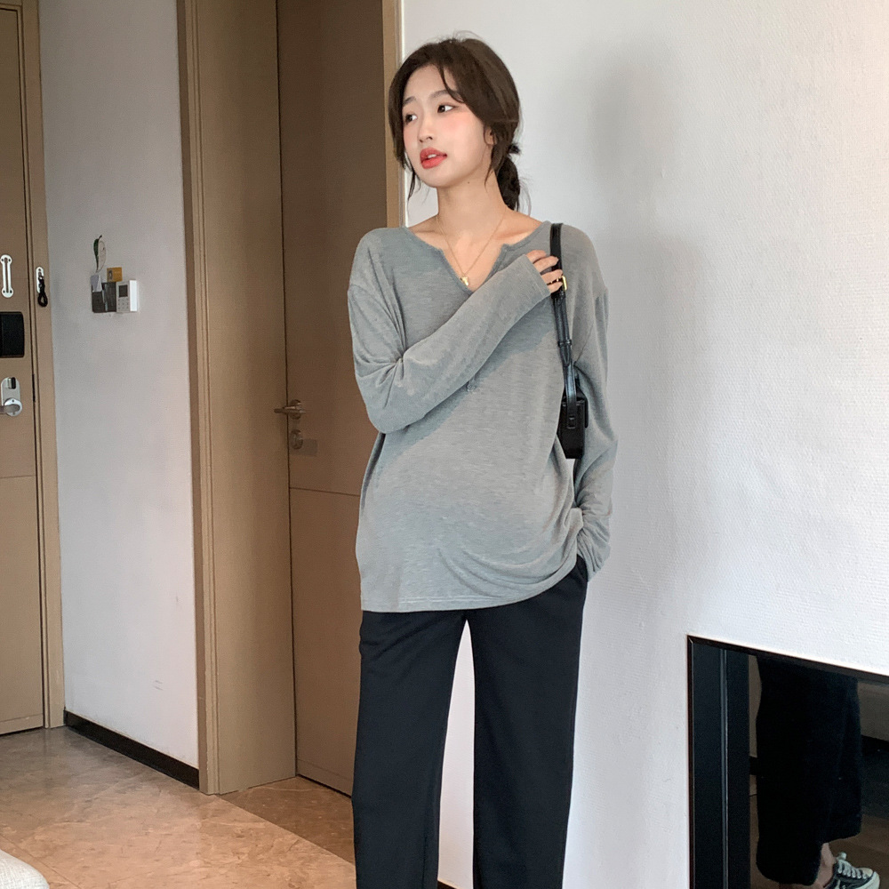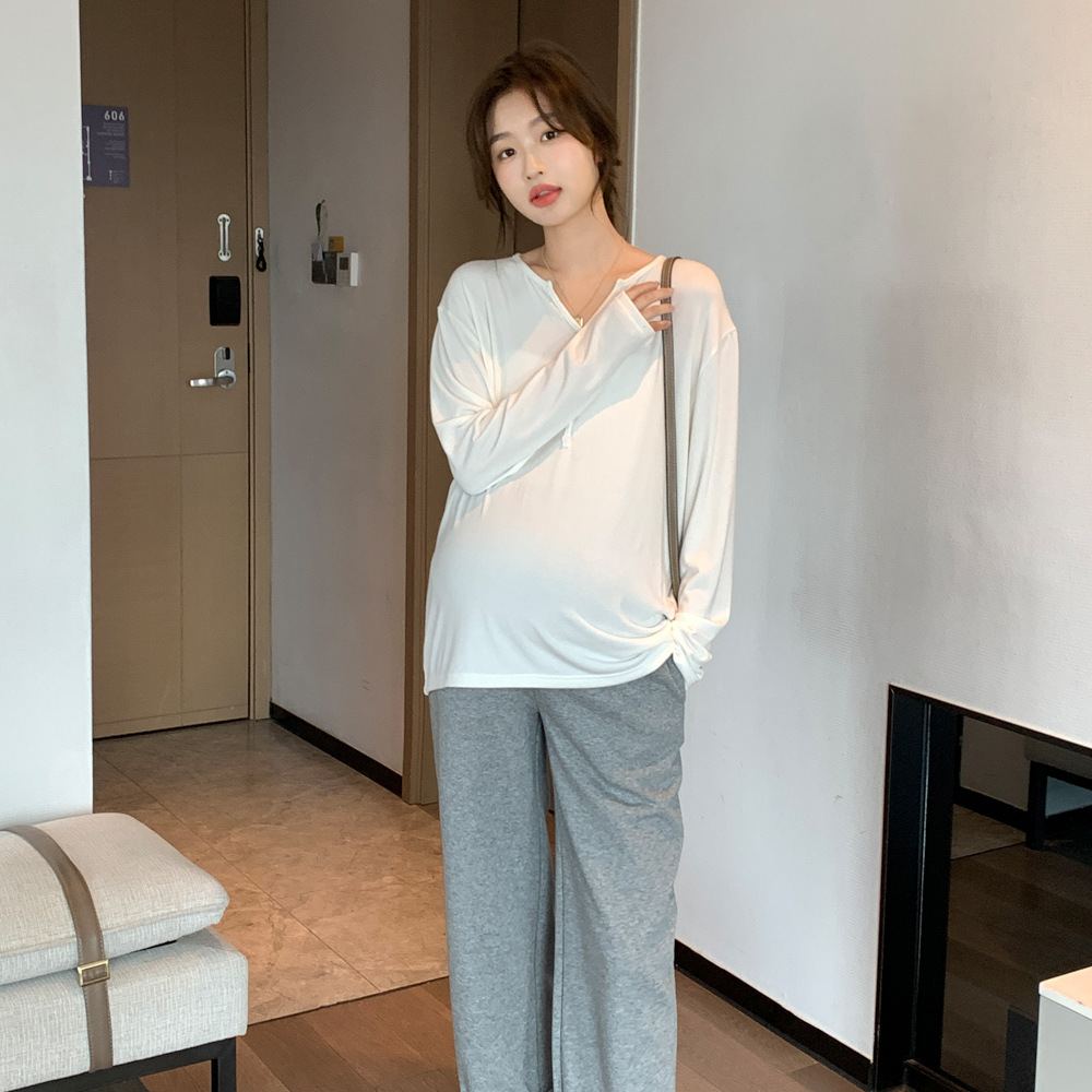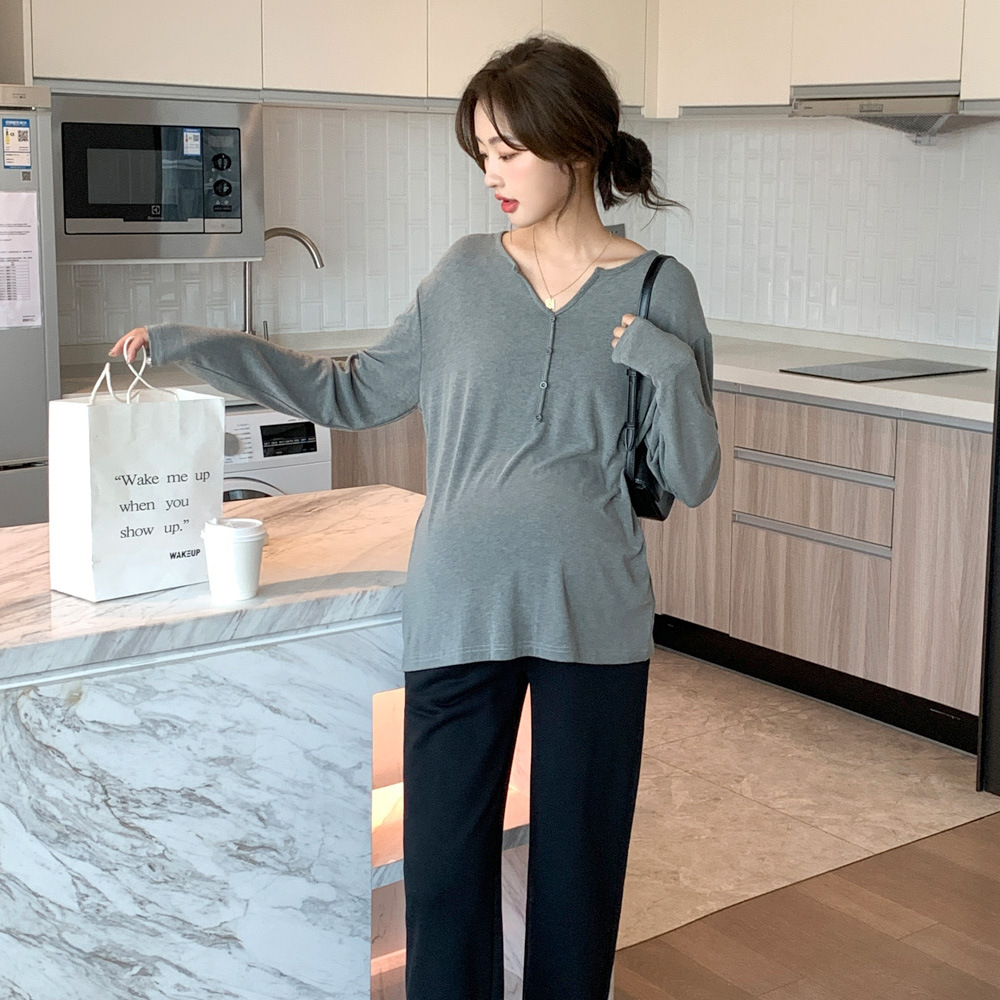 Осенняя новая одежда для беременных Корейская Мода футболка с V-образным вырезом и пряжкой с длинным рукавом Горячая мама Ранняя осень базовая одежда