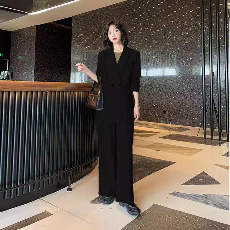 T2281 плюс размер женский длинный костюм женский пухленькая девушка темперамент способный широкие ноги Швабра брюки два комплекта