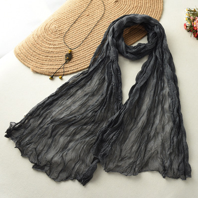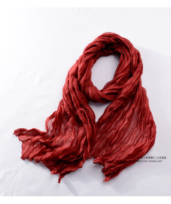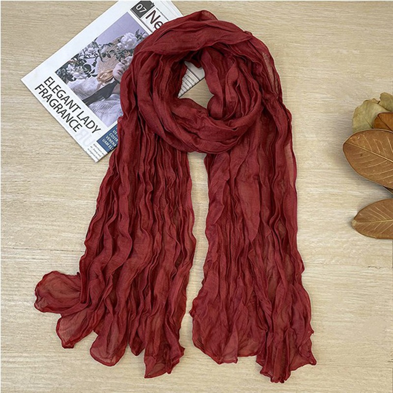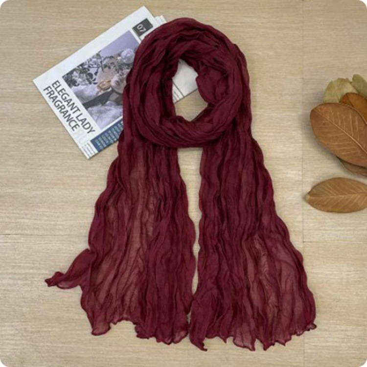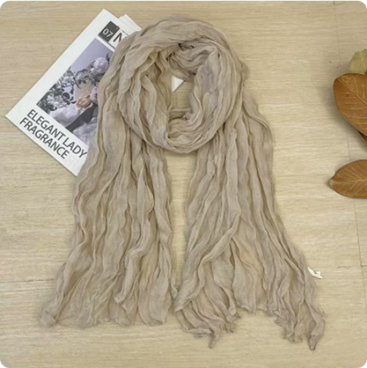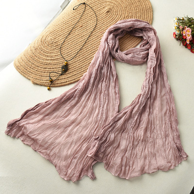 Корейский стиль, новый весенне-осенний зимний плиссированный шарф из хлопка и льна, однотонный простой Универсальный длинный тонкий платок, шарф, женский шарф