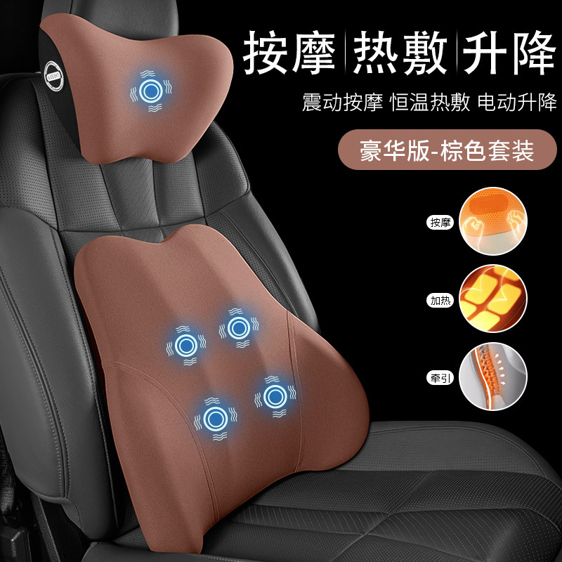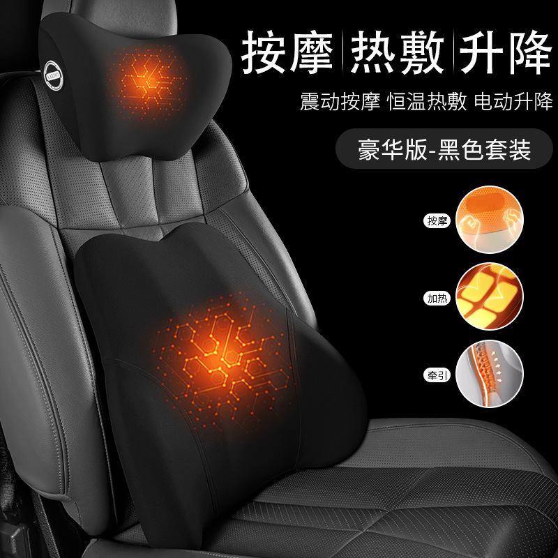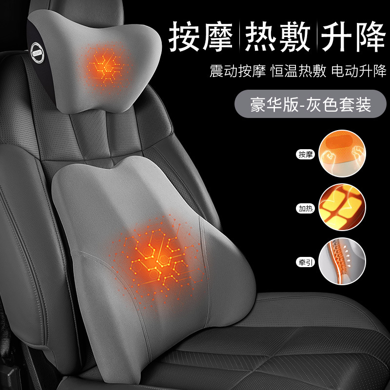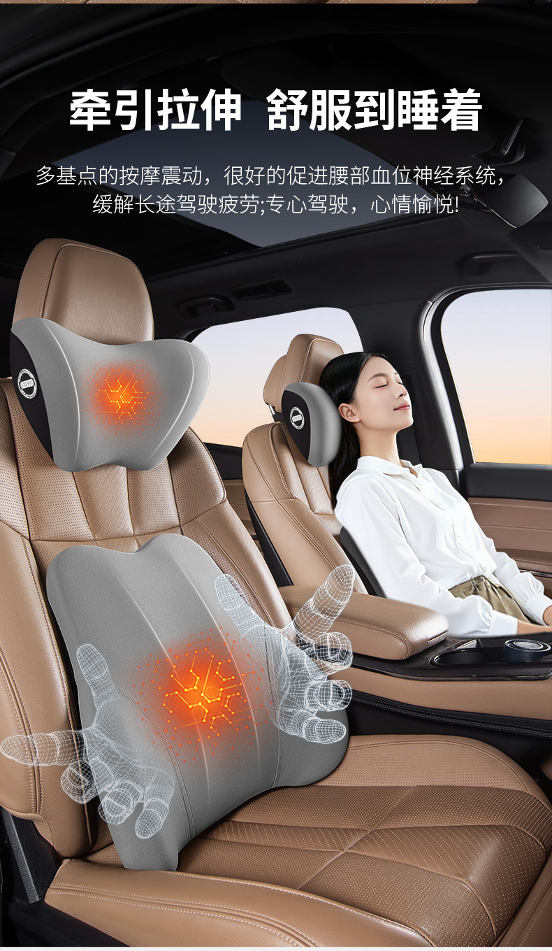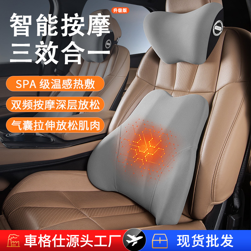 Новая умная автомобильная подушка-подголовник 3-в-1 с поясничной поддержкой, из пены с эффектом памяти, с электрическим массажем, подогревом и функцией подушки безопасности