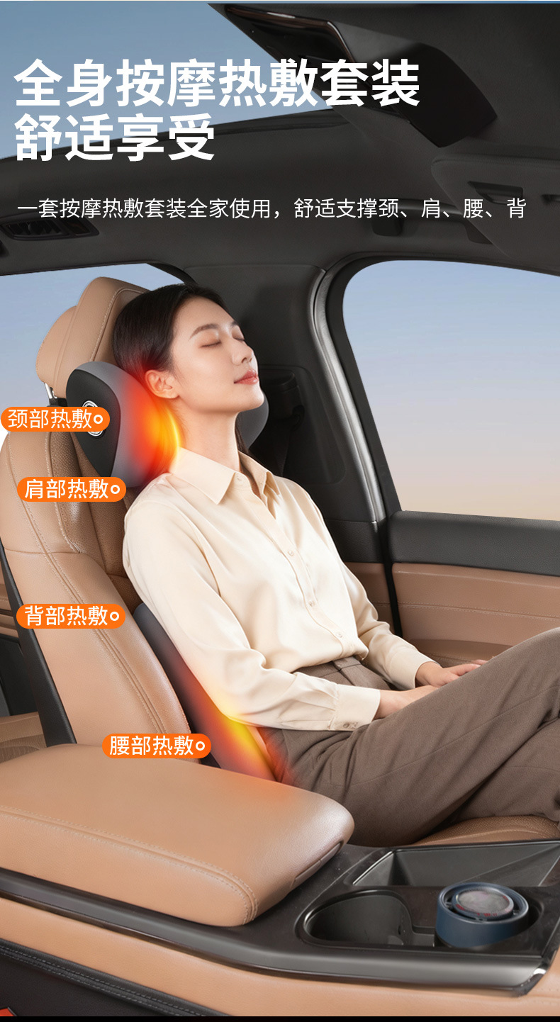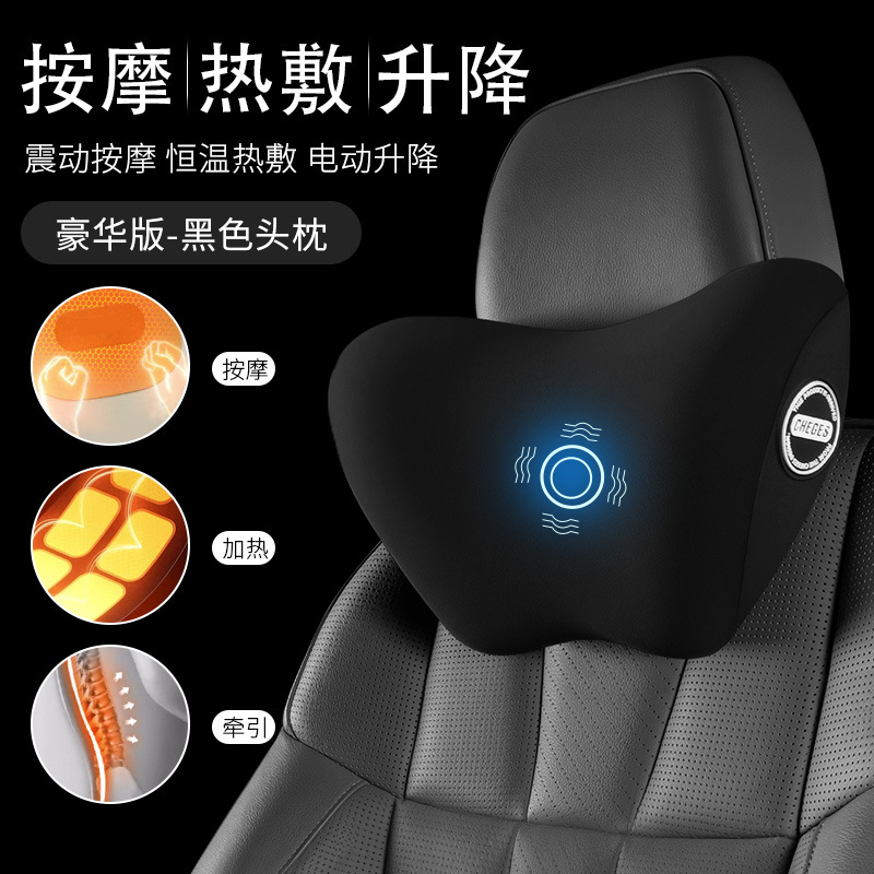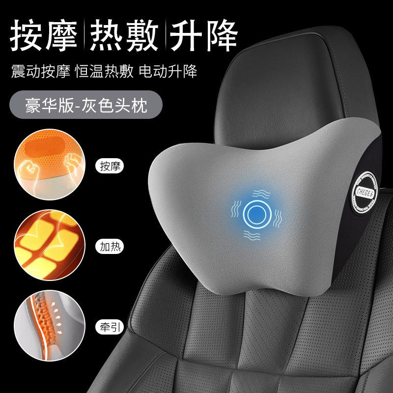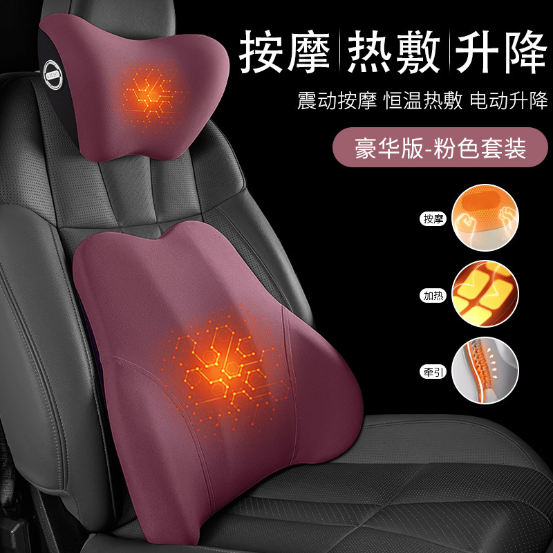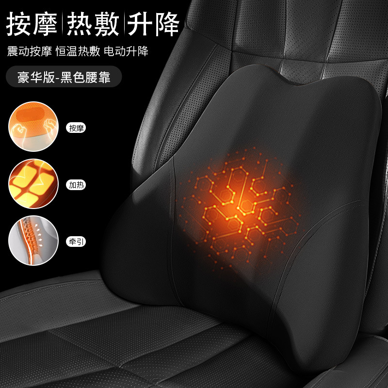 Новая умная автомобильная подушка-подголовник 3-в-1 с поясничной поддержкой, из пены с эффектом памяти, с электрическим массажем, подогревом и функцией подушки безопасности