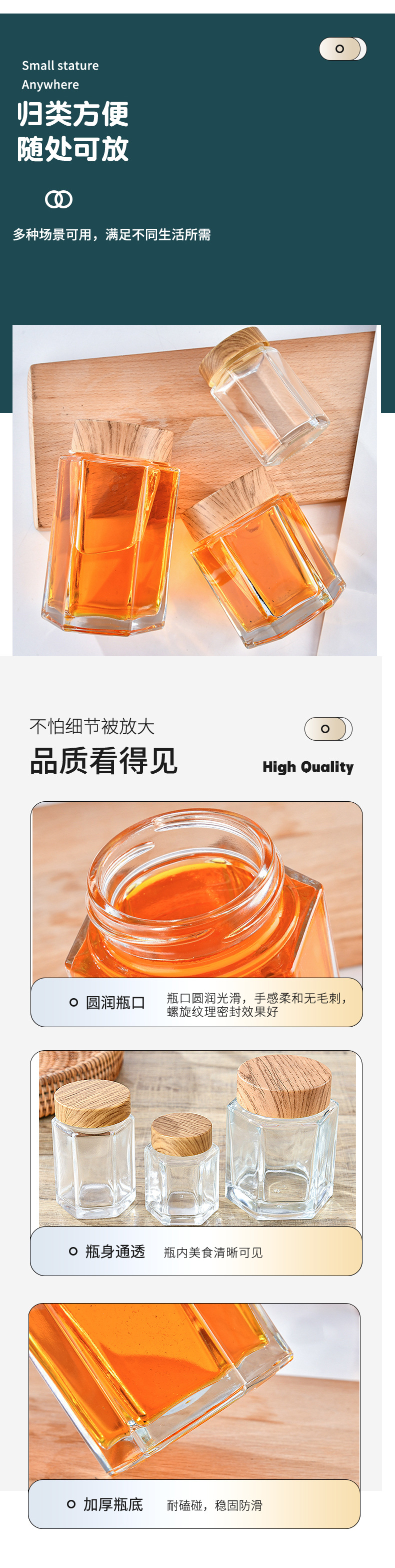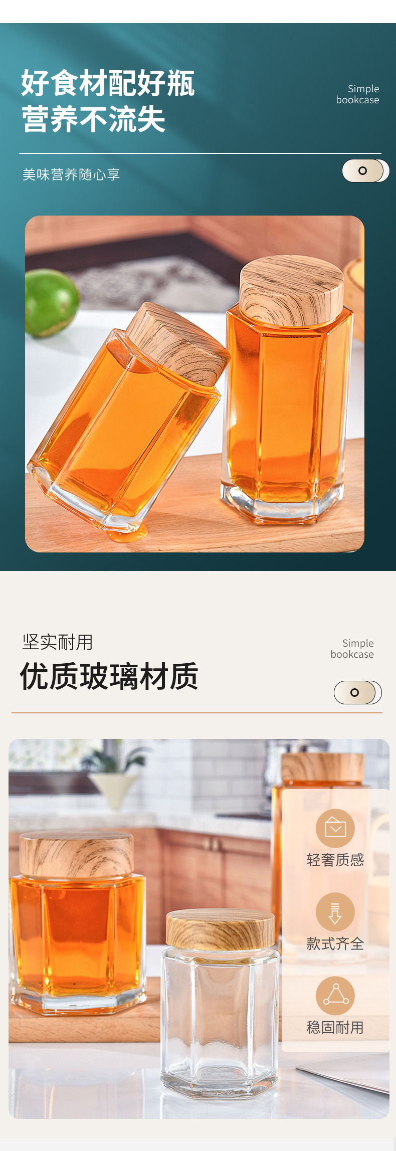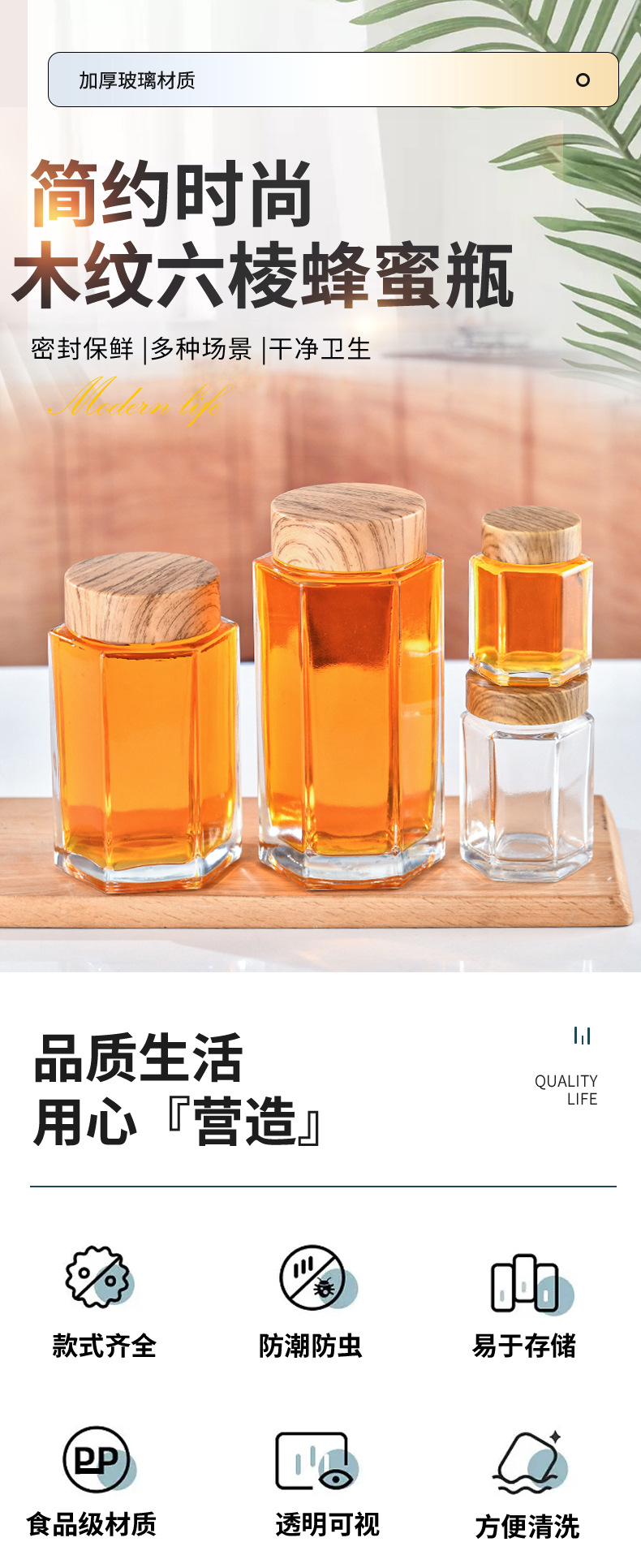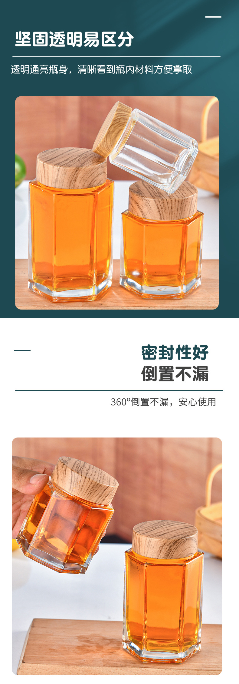 Фабрика оптовой шестигранной деревянной крышкой бутылки меда стеклянная бутылка герметичная банка с крышкой Чили соленья бутылка варенья банка