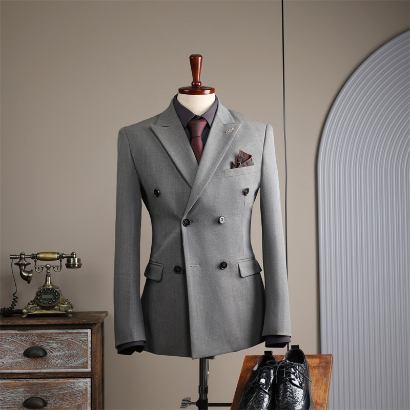 Синий двубортный костюм, мужской формальный британский модный свадебный костюм жениха, деловой повседневный костюм, мужская одежда