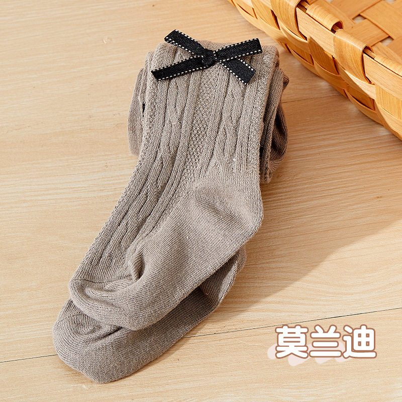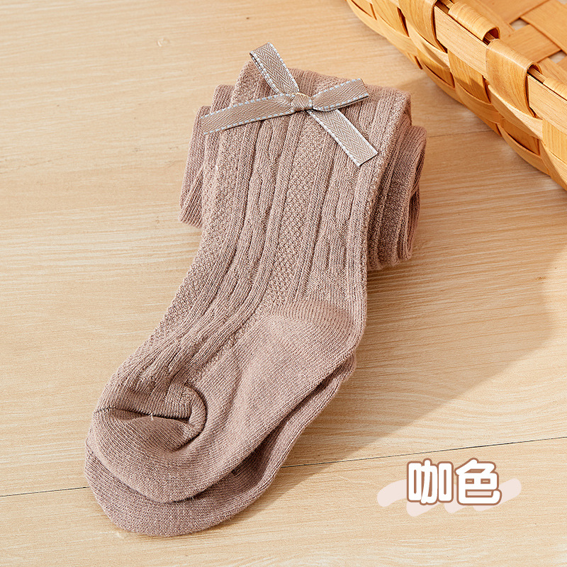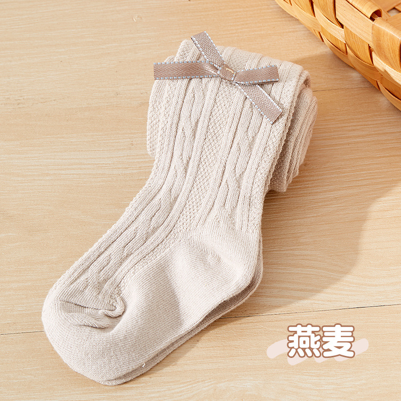 Трансграничные поставки новых детских леггинсов для девочек, весенне-осенние вязаные хлопковые брюки с бантом и открытой промежностью, носки