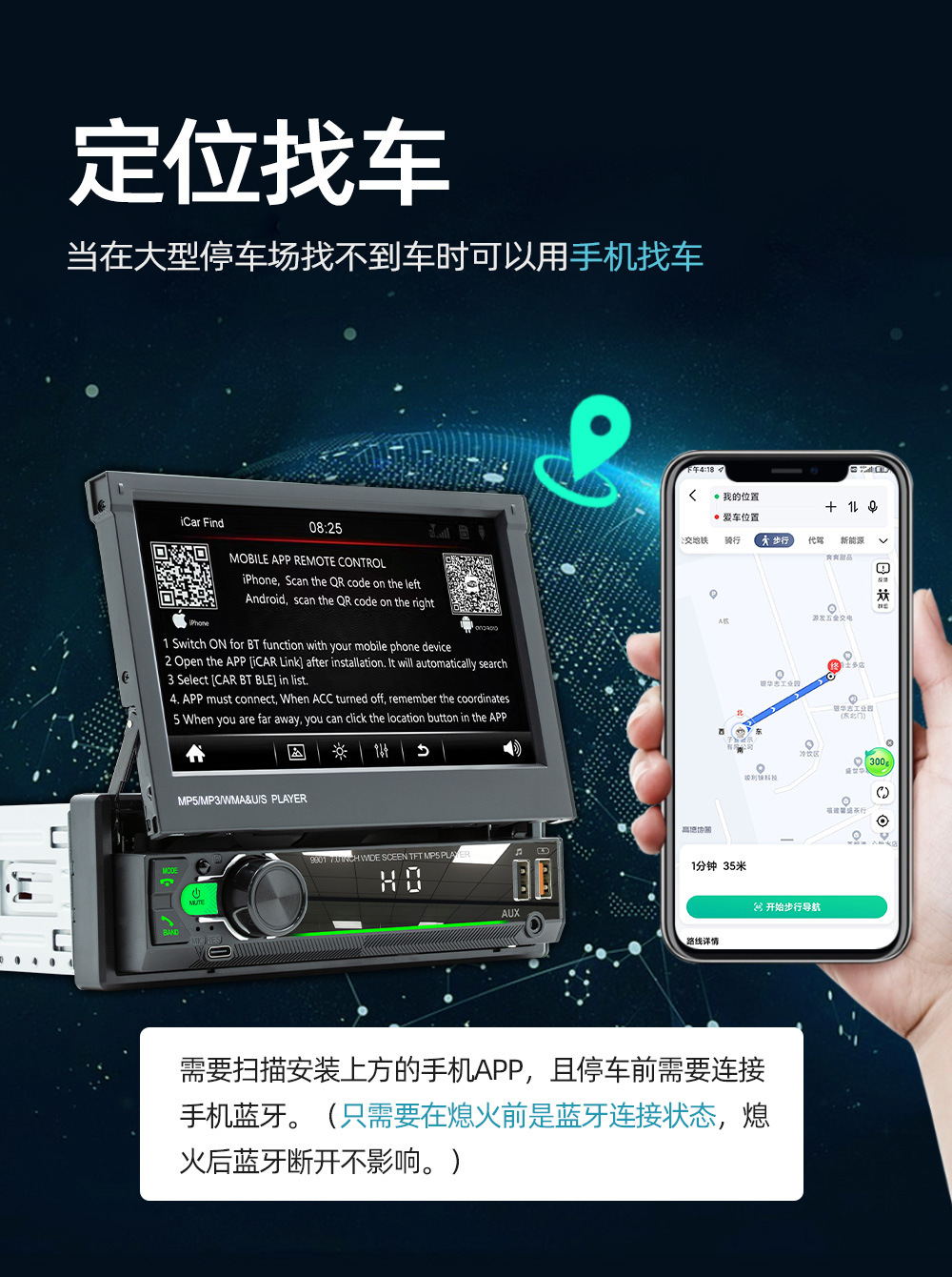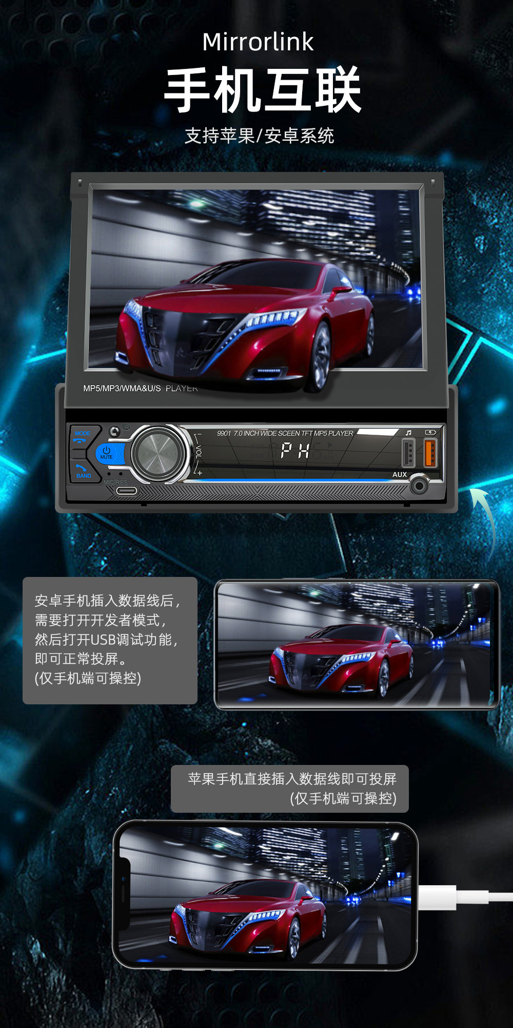 7inch Одноцилиндровый автомобильный телескопический экран MP5/MP4/MP3-плеер Smart Bluetooth Автомобильный центральный контроль FM-радио