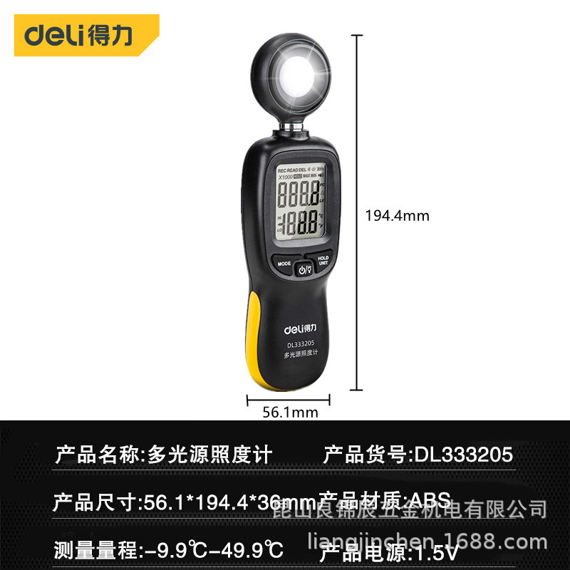 Иллюмометр Deli Tool Высокоточный цифровой детектор яркости с несколькими источниками света для помещений и улицы DL333204 5