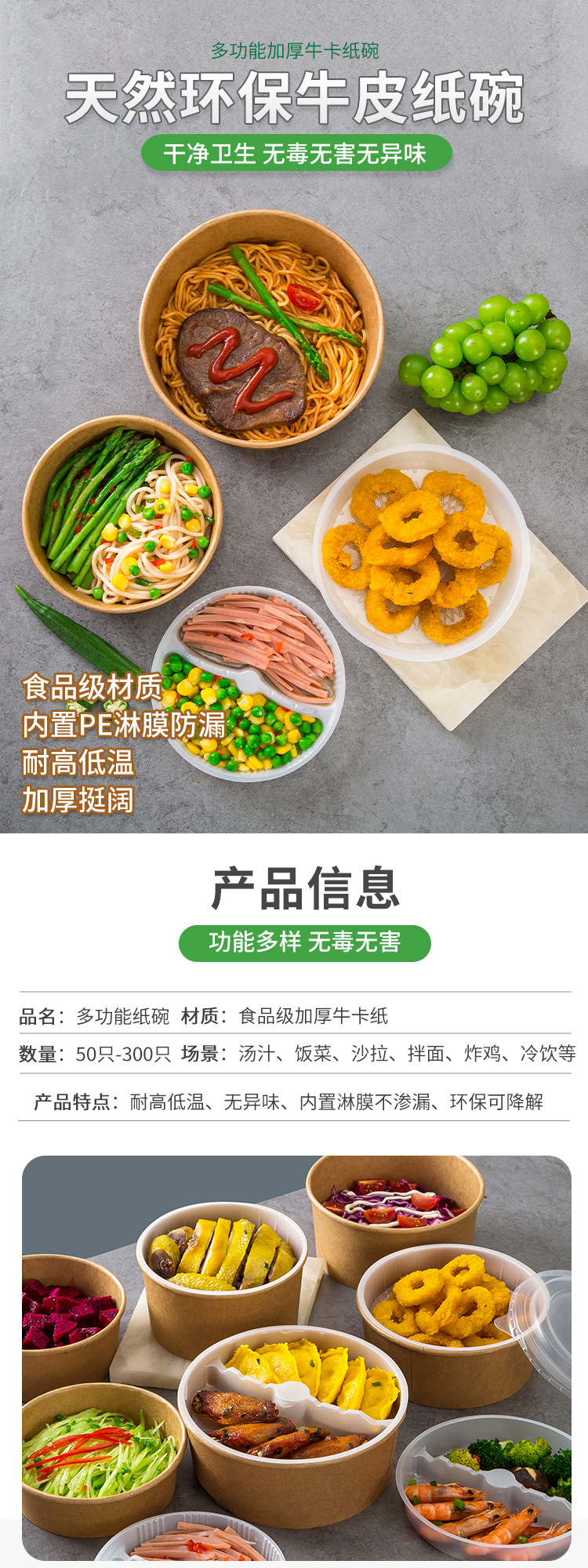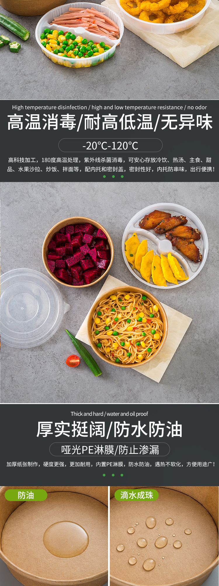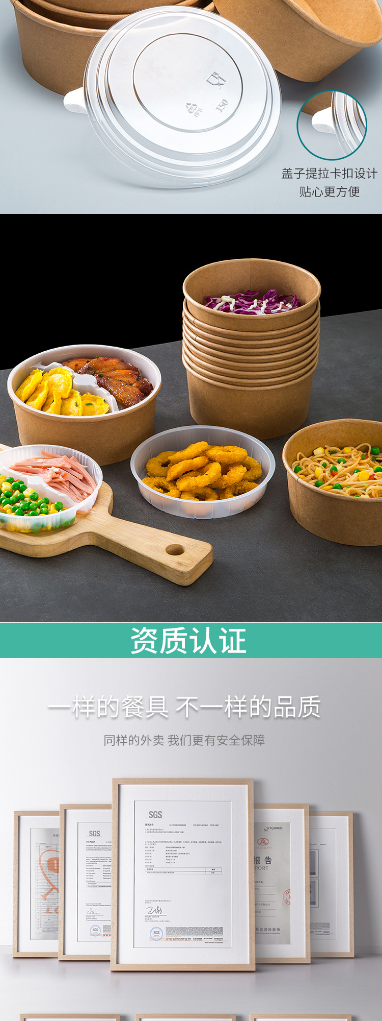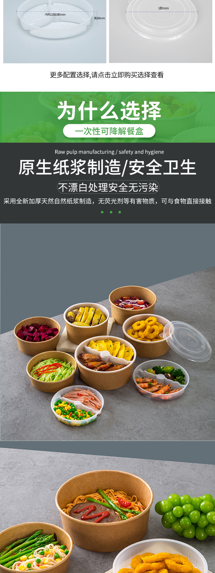 Одноразовые крафт-бумага ланч бокс Салатница круглая вынос упаковочная коробка с крышкой термостойкие суп миска утолщенные биоразлагаемые