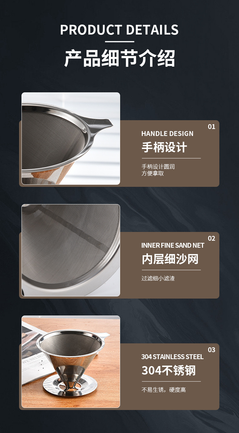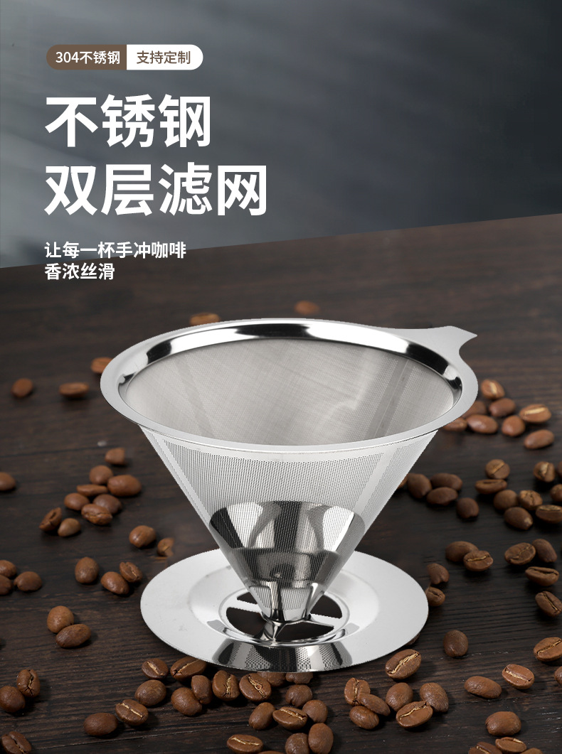 Кофейный фильтр из нержавеющей стали 304, двухслойное сито, большой бытовой фильтр без бумаги, капельный фильтр для кофе ручной работы