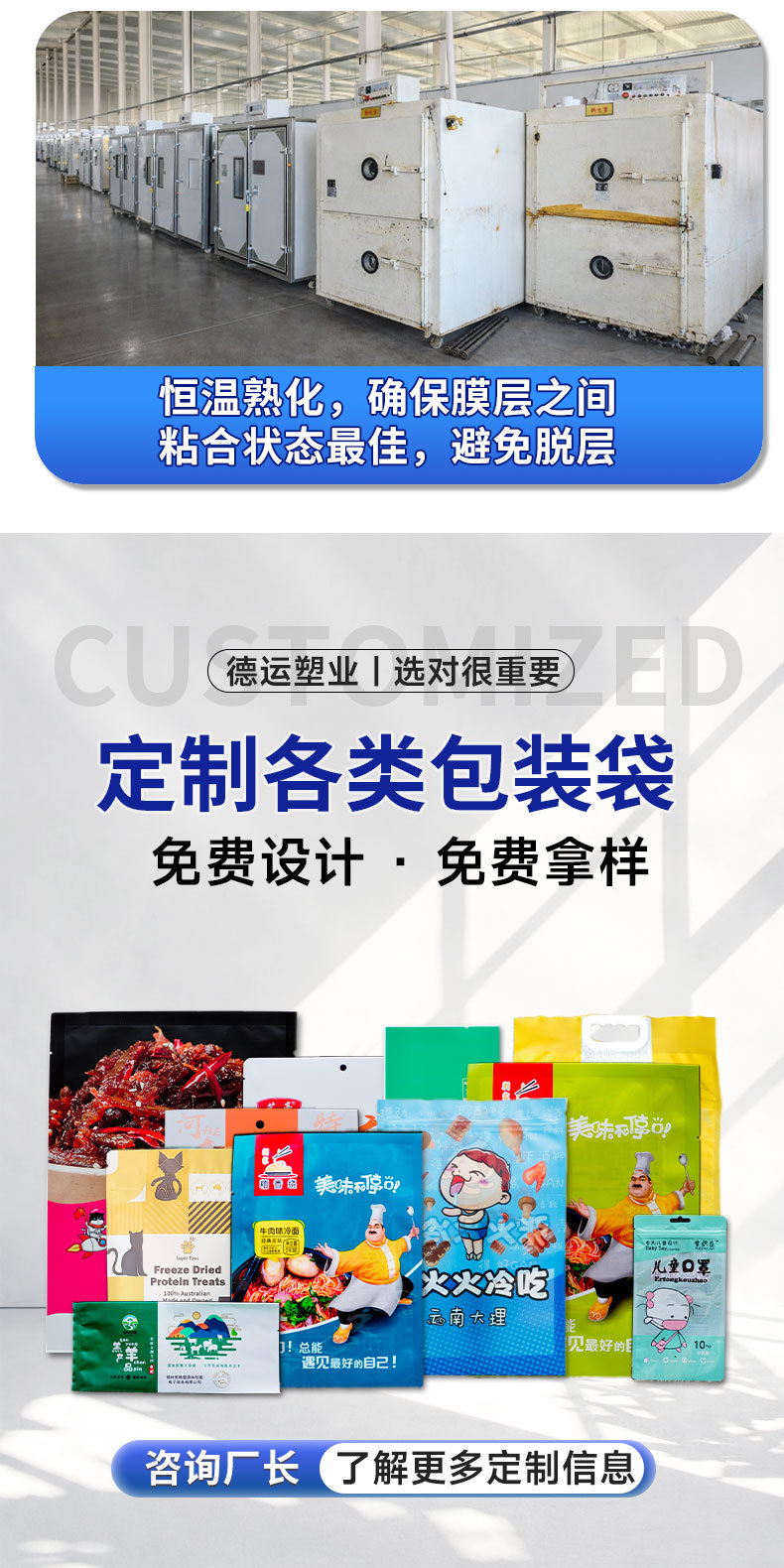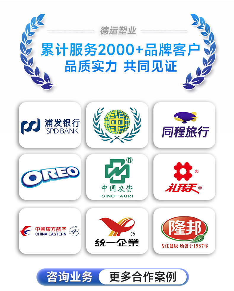 1.德运深耕包装行业二十五年,资质齐全、设备完善,为客户提供更专业、更前瞻的包装解决方案。品质稳定、交期可靠,是值得信赖的食品包装袋源头工厂。