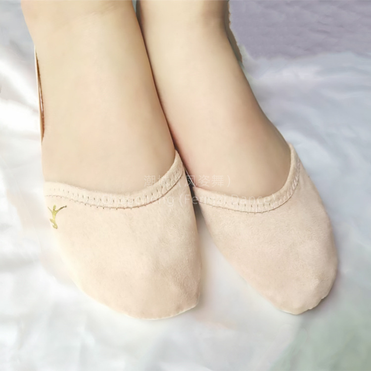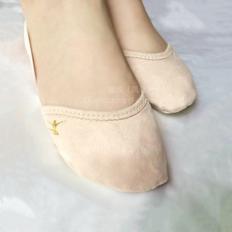 Танцевальные туфли для художественной гимнастики и балета (для взрослых и детей) из замши с мягкой подошвой, полупрозрачные, с носками