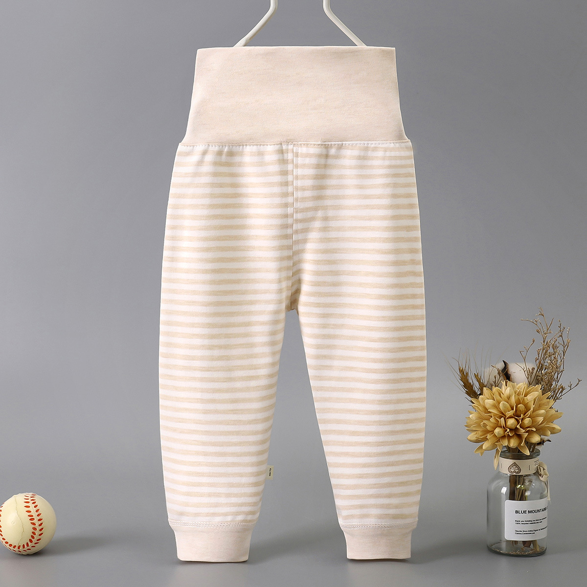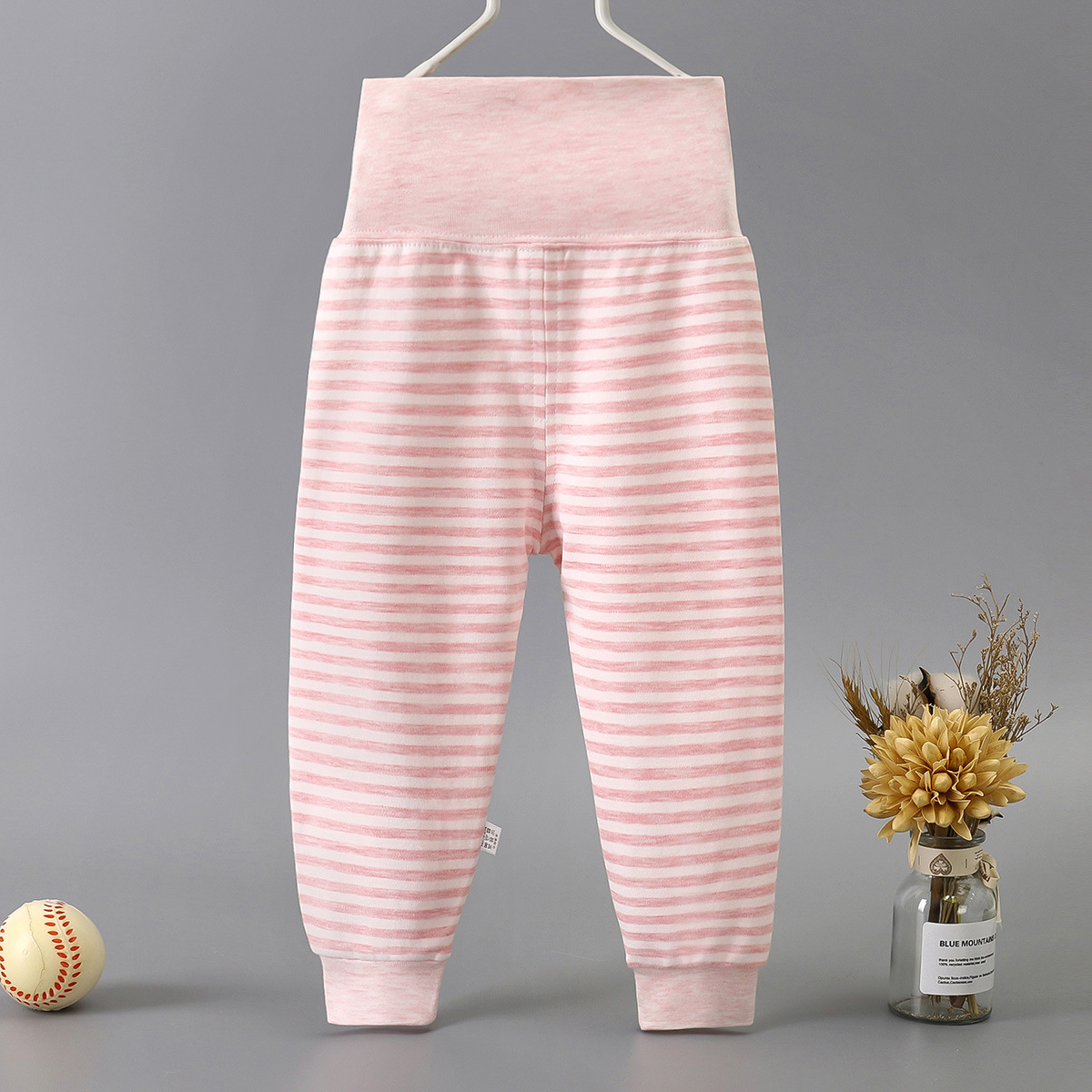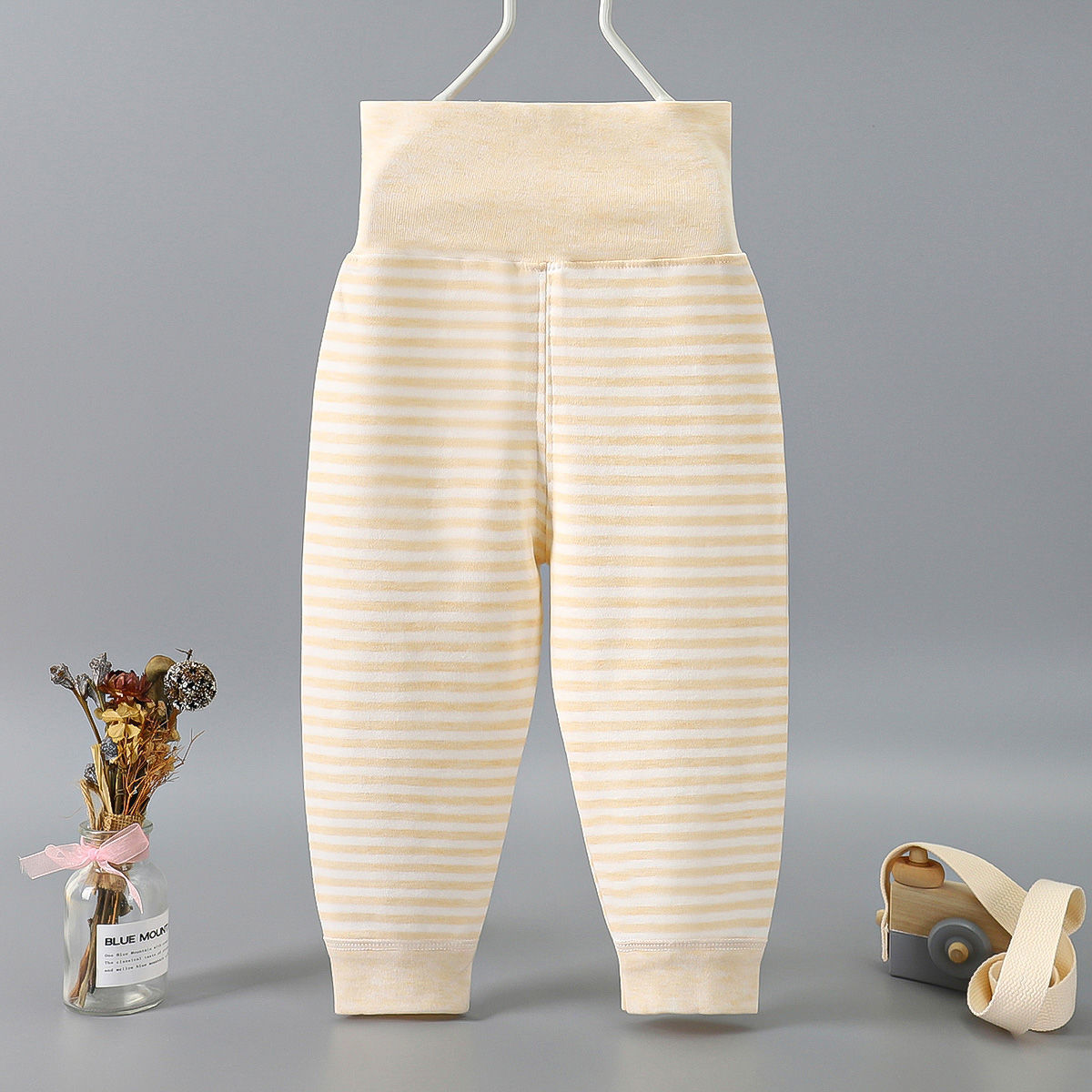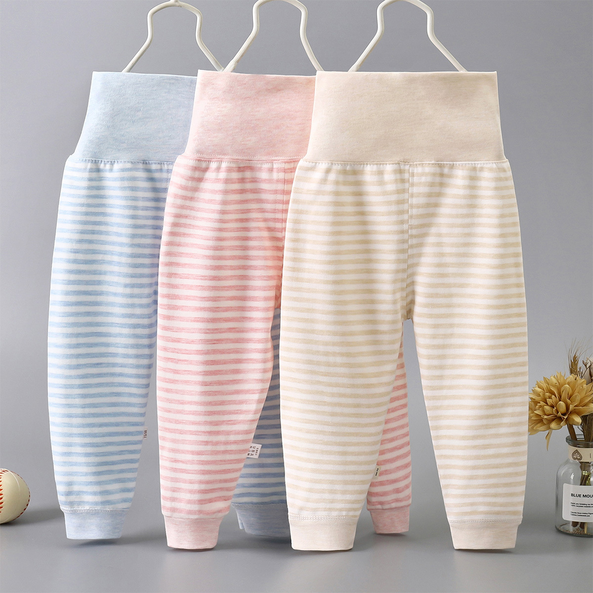Весной и осенью детские штаны с высокой талией для защиты живота Детские цветные хлопковые штаны с нитью Штаны для новорожденных с открытым шаговым швом Базовые штаны
