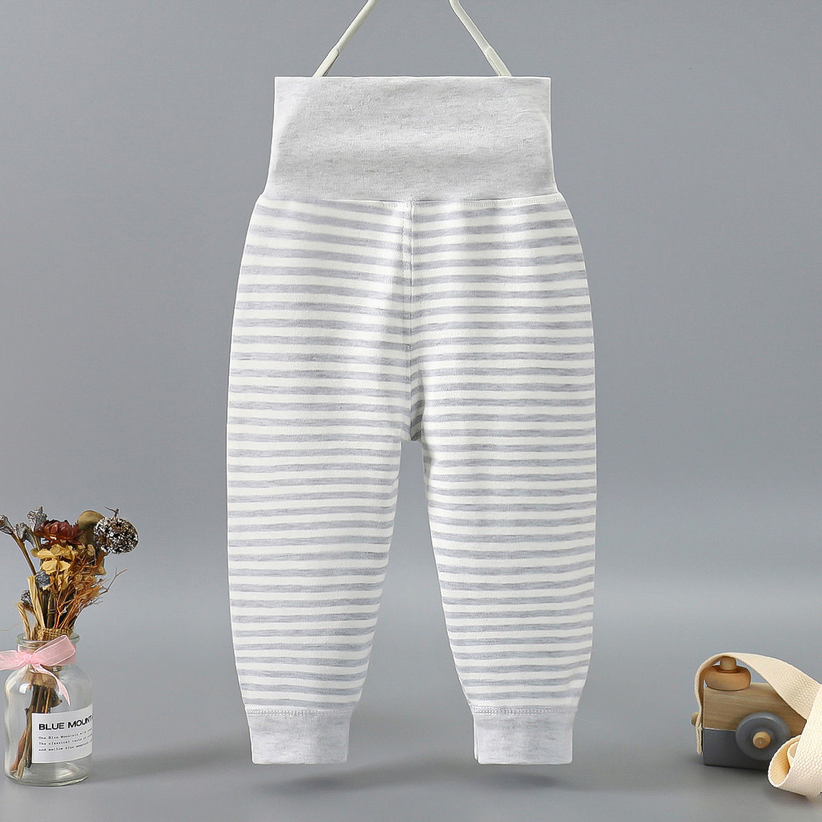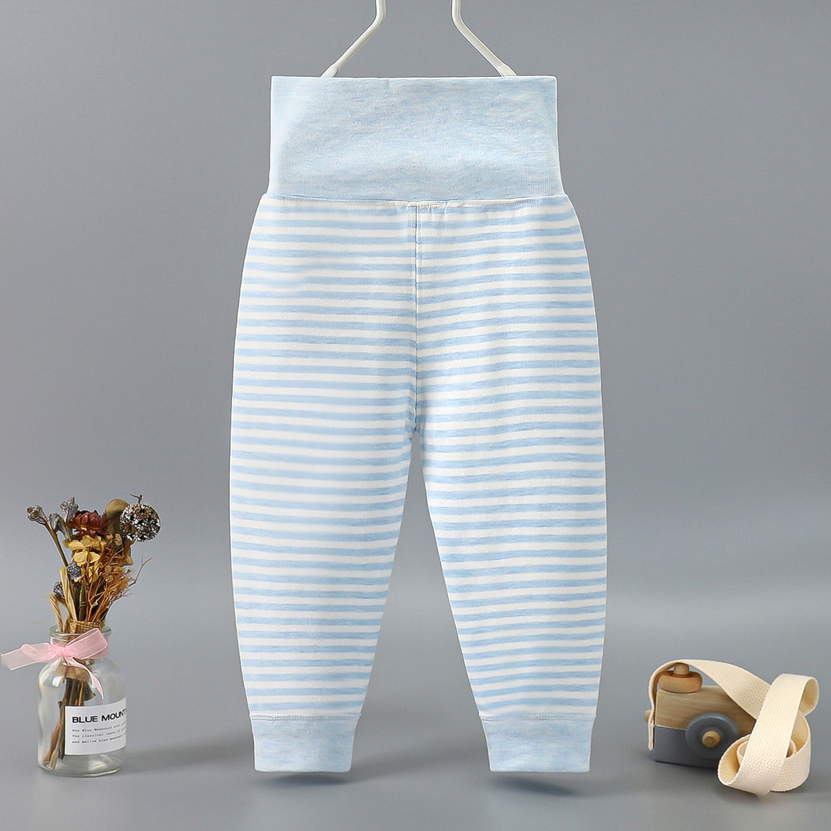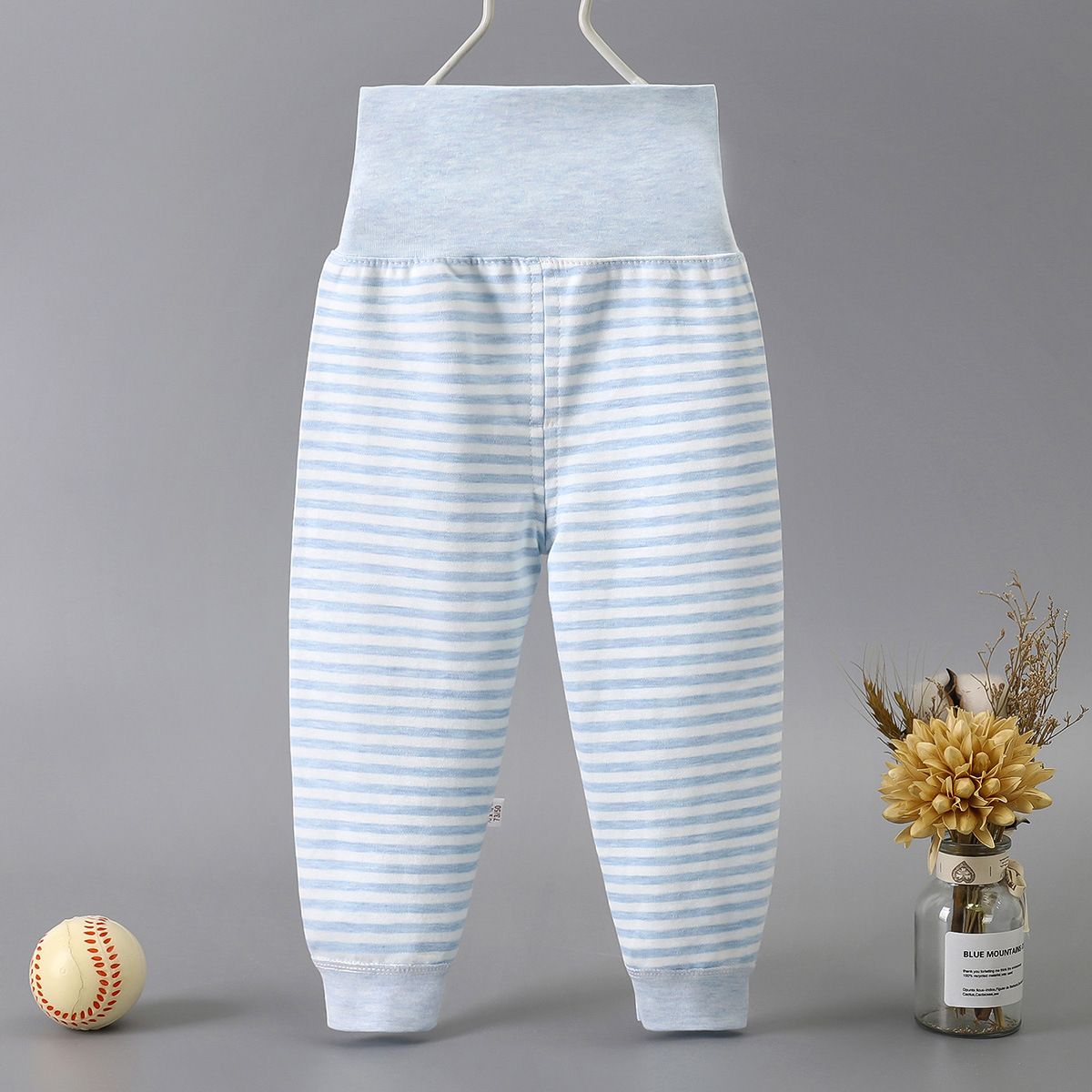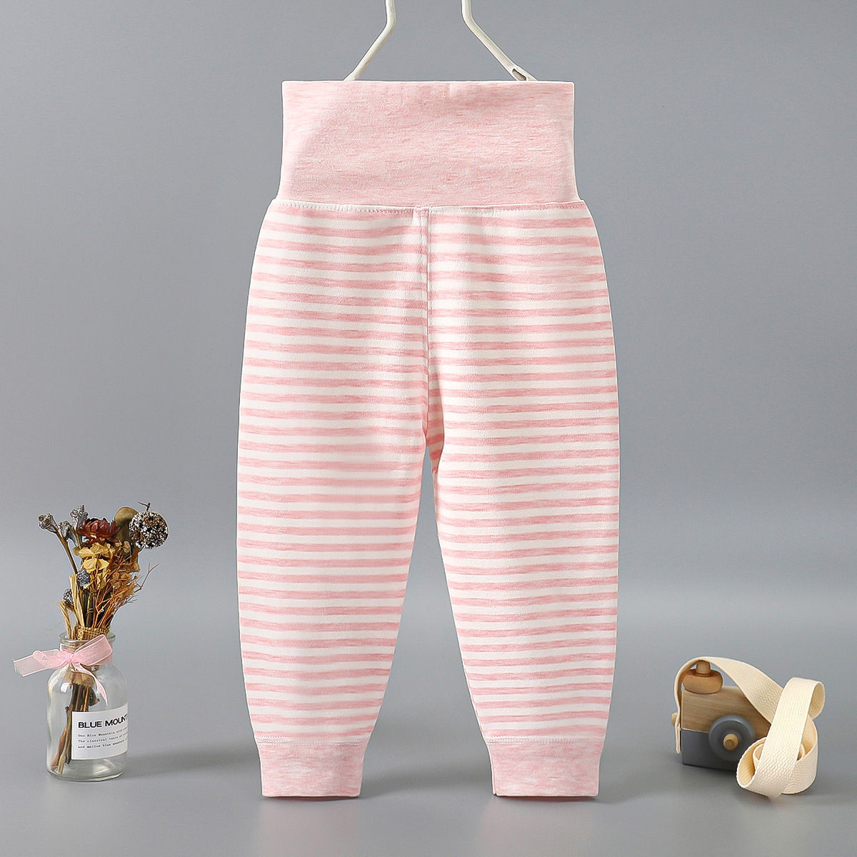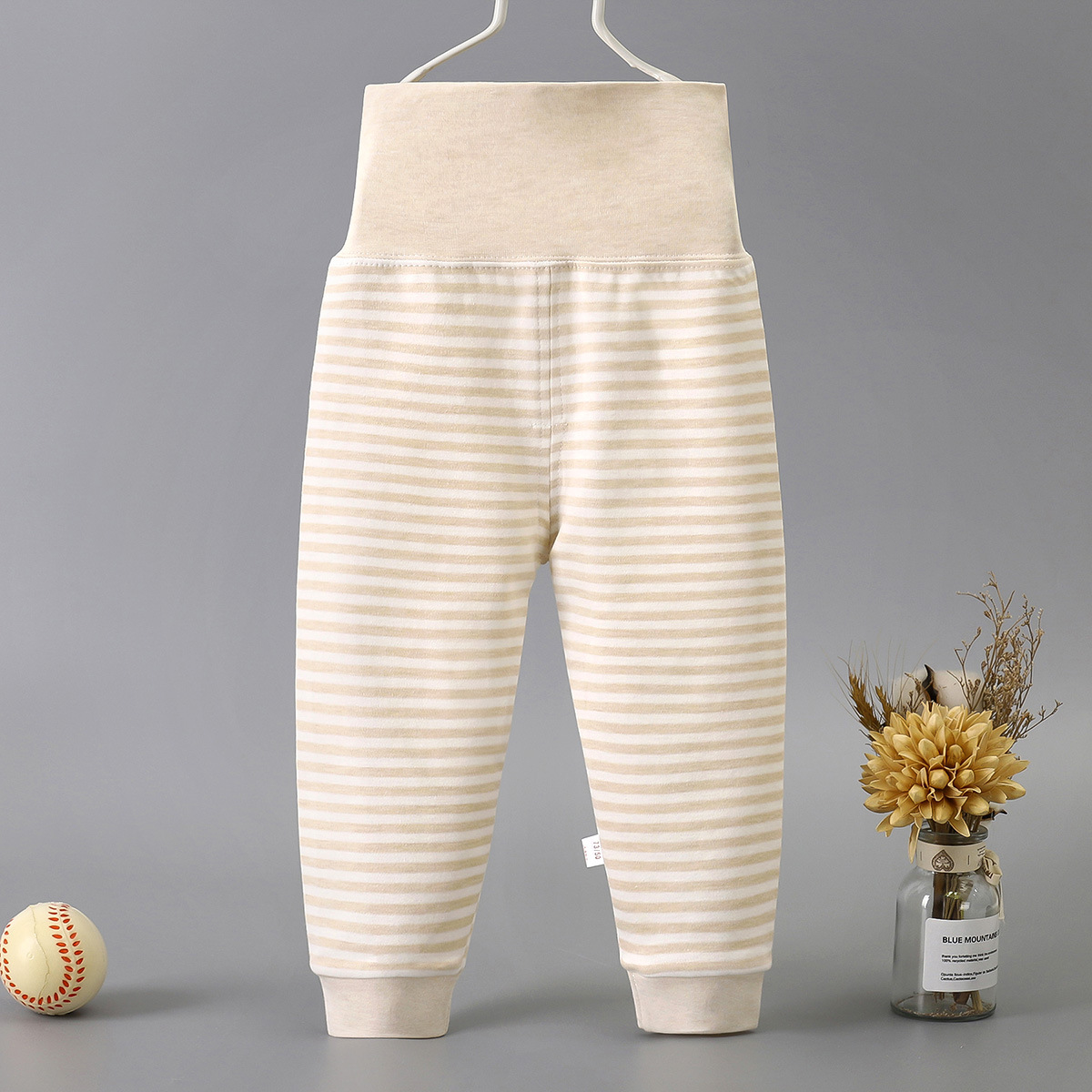 Весной и осенью детские штаны с высокой талией для защиты живота Детские цветные хлопковые штаны с нитью Штаны для новорожденных с открытым шаговым швом Базовые штаны
