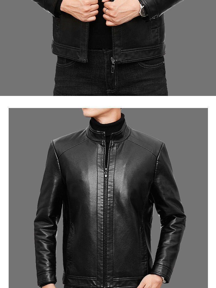 Распродажа Jianghu для бега, осенне-зимние товары, хорошая кожаная куртка, Мужская Утепленная кожаная куртка с вертикальным воротником и флисовой подкладкой, куртка больших размеров для среднего и пожилого возраста
