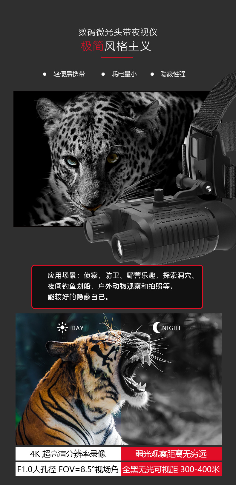 狩猎、侦察、安全和监视、野营乐趣,探索洞穴、夜间钓鱼和划船、野生动物观察和拍照等。