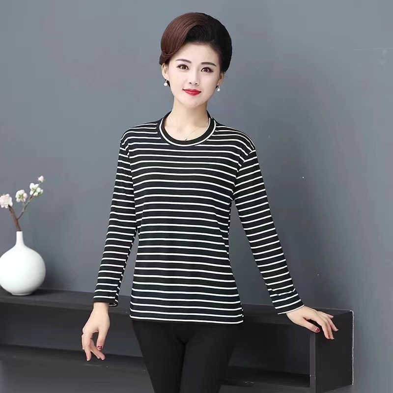 Осенняя одежда для женщин среднего и старшего возраста 2025 года: однотонная немецкая вельветовая футболка в полоску с длинным рукавом, свободного кроя, больших размеров, для мам.