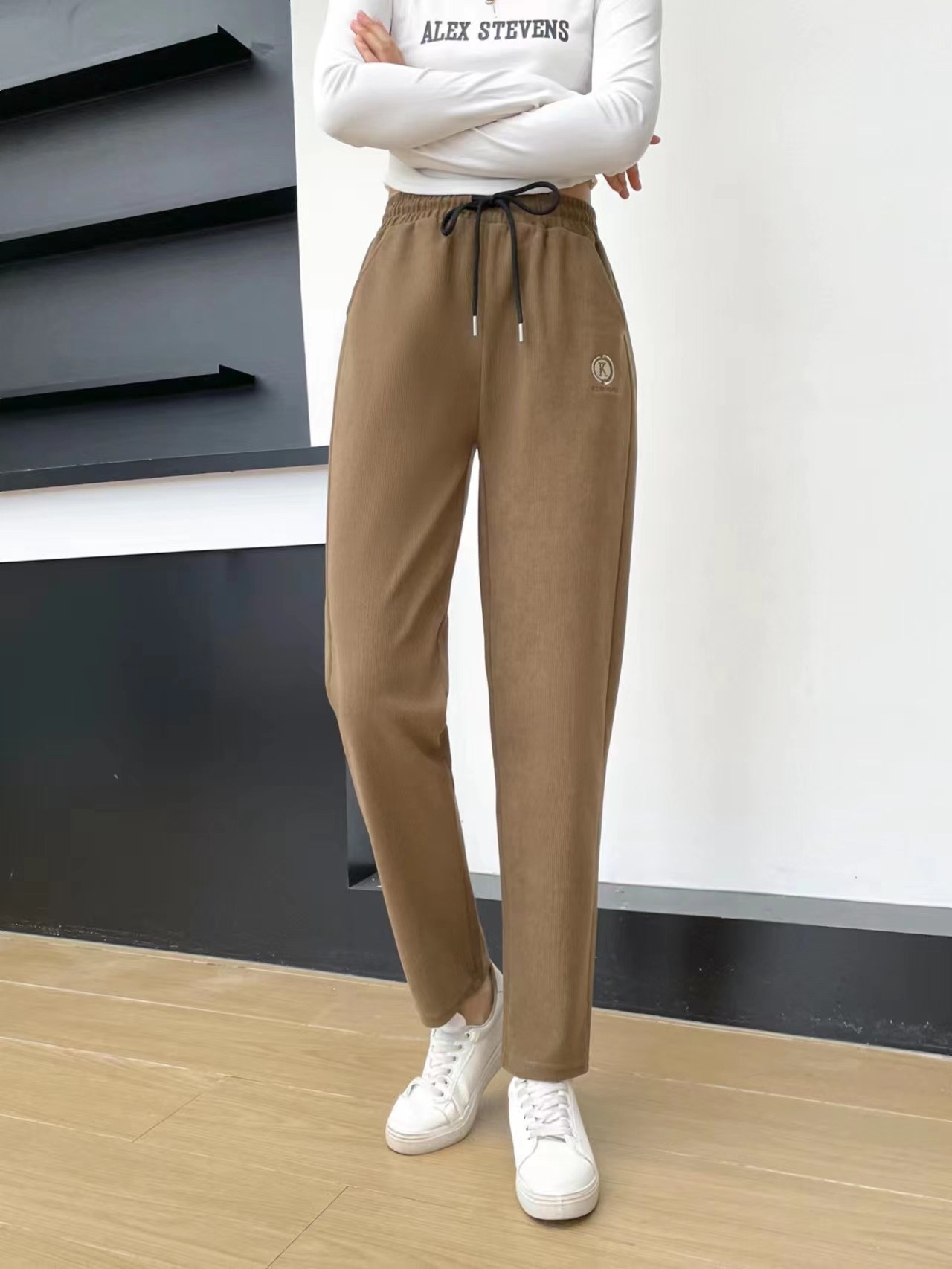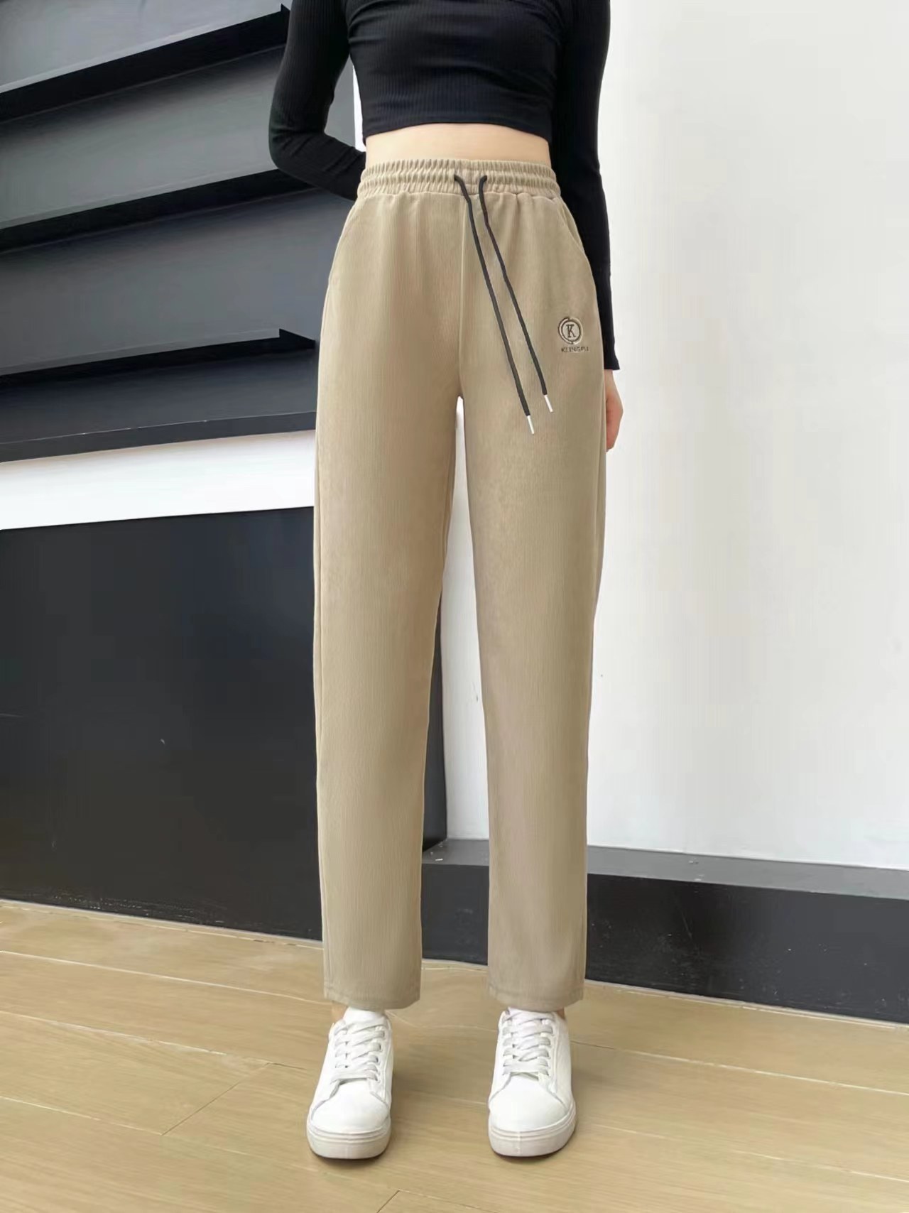 Новые женские брюки осенне-зимнего сезона 2025 для женщин среднего и старшего возраста, вельветовые тонкие полосатые брюки из капокового вельвета с карманами на шнурке, повседневные брюки для мам