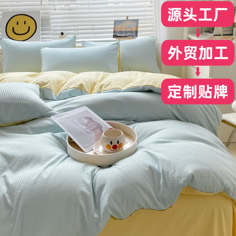 Комплект постельного белья из четырех предметов: простыня, пододеяльник, наволочка, комплект из трех предметов для студенческого общежития, из начесанного хлопка, домашний текстиль из Наньтуна.