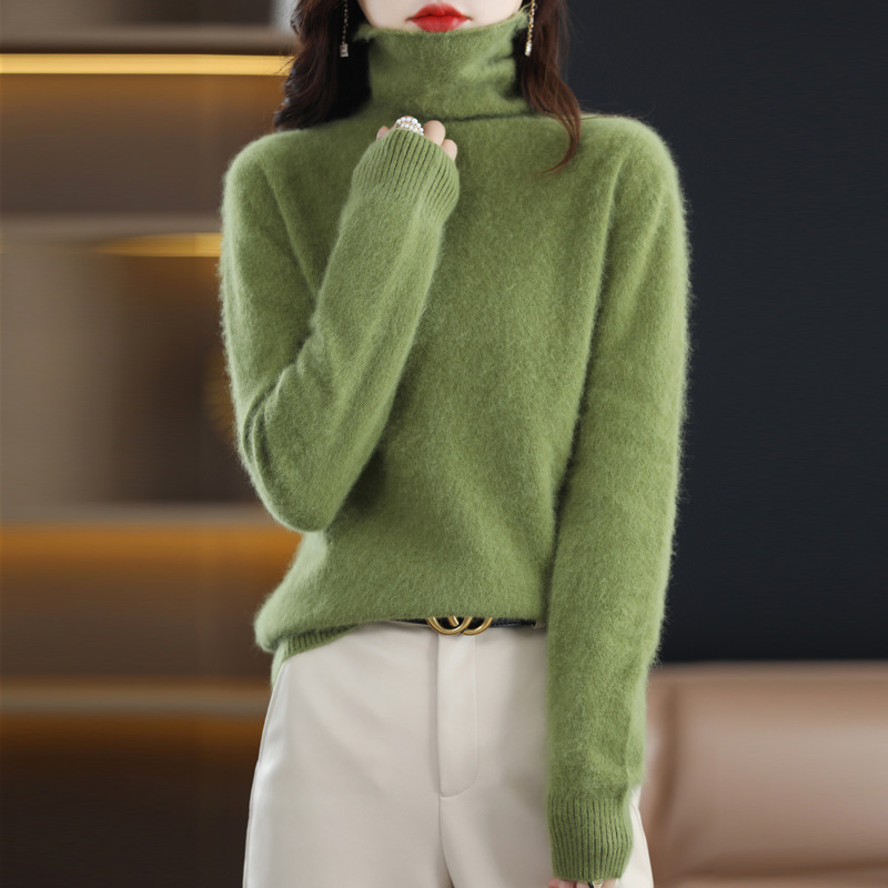 Осенне-Зимний новый женский кашемировый пуловер со свободными ворсами и высоким воротником, короткий норковый вязаный свитер, Базовая рубашка, шерстяной свитер