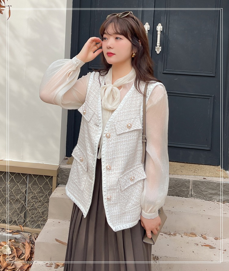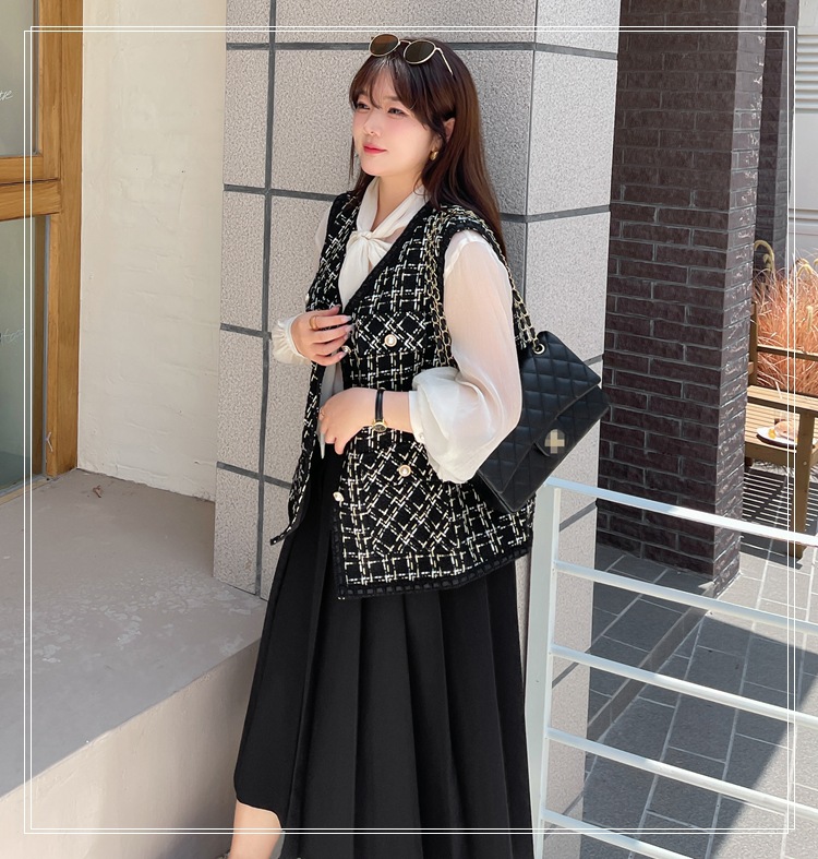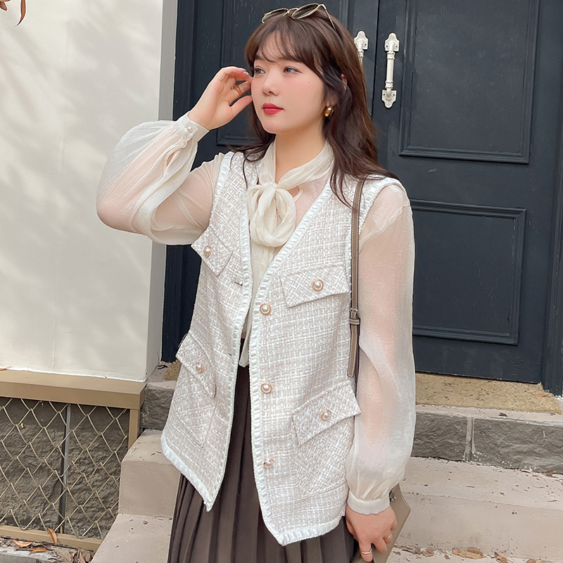 616 жилет Socialite Xiaoxiang твидовый жилет ins Корейская версия больших размеров женский толстый MM200 кг 300 кг