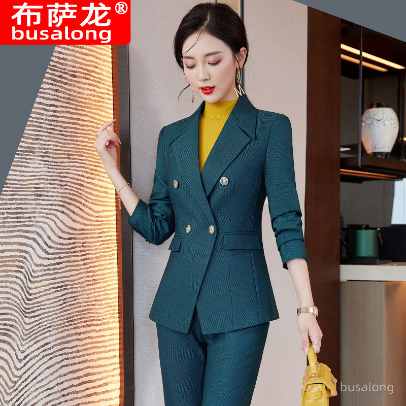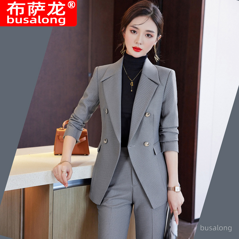 Женский профессиональный костюм Busalong в Корейском стиле с длинными рукавами, формальный костюм, брючный костюм, рабочая одежда для интервью, продажи 9699