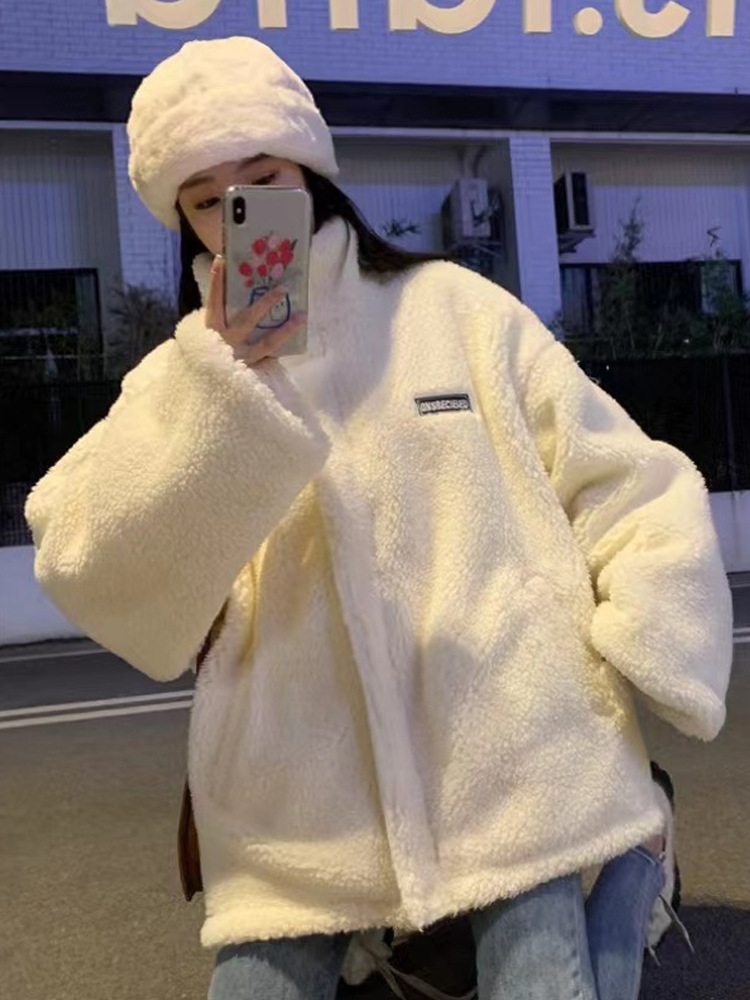 Женская куртка из овечьей шерсти, новая модель осень-зима 2025 года, модная утолщенная повседневная универсальная корейская версия толстовки для женщин.
