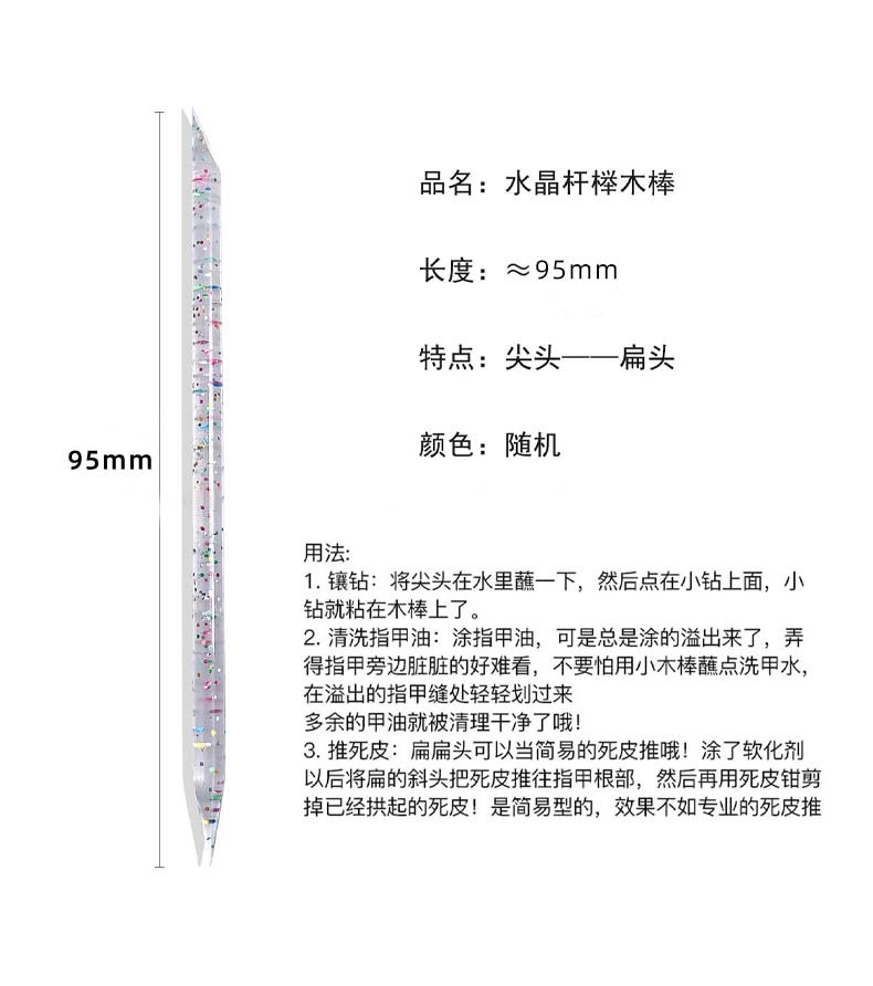 75мм (маникюрная многофункциональная деревянная палочка); Цвет 95 мм (многофункциональная хрустальная палочка для маникюра); 95 мм светло-голубой (многофункциональная хрустальная палочка для маникюра); 95 мм серебристо-белый (многофункциональная хрустальная палочка для маникюра); 95 мм красный (многофункциональная хрустальная палочка для маникюра); 95 мм розовый (многофункциональная хрустальная палочка для маникюра)