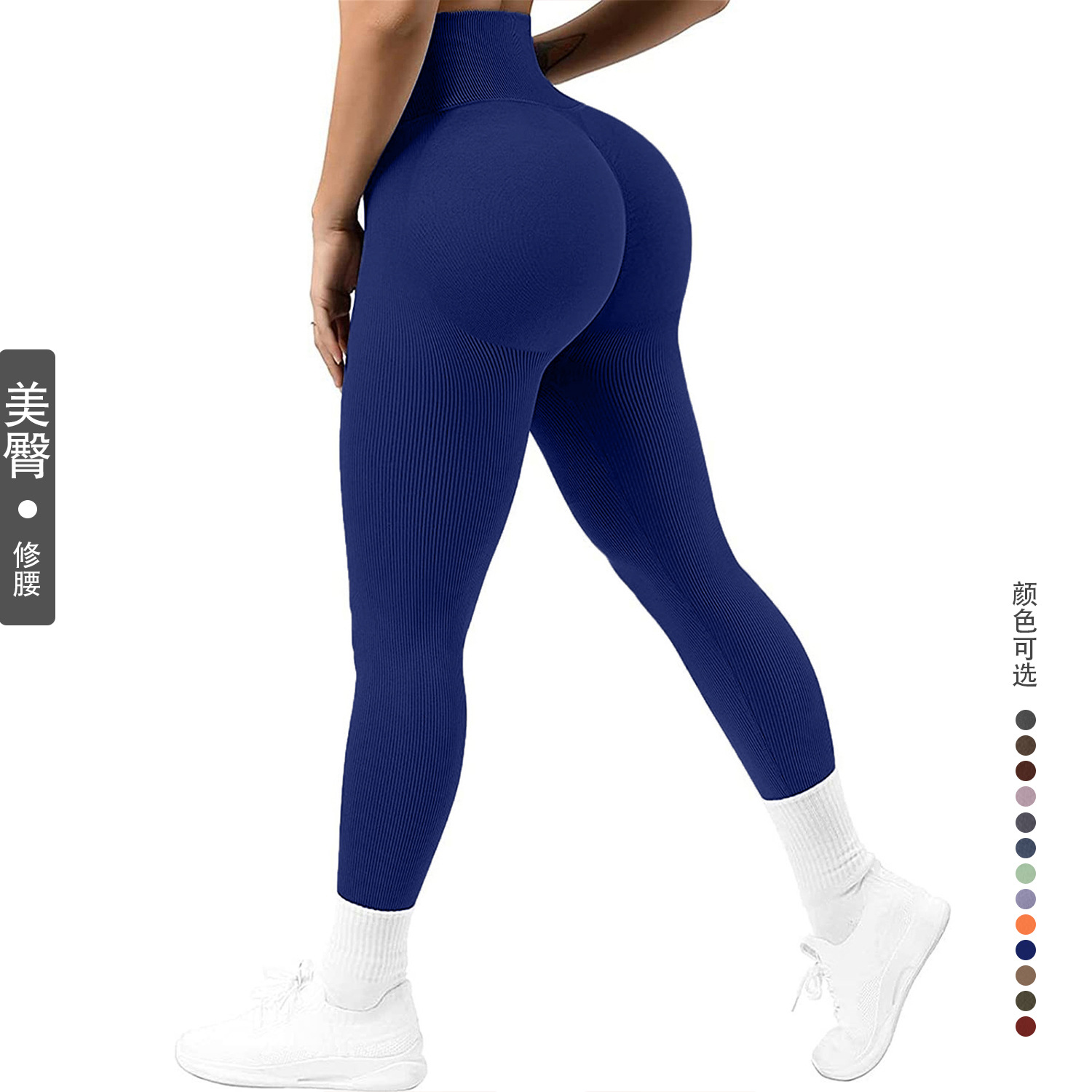 Новые трансграничные европейские и американские бесшовные вязаные нитки Персиковые штаны для йоги с V-образной талией Высокоэластичные спортивные штаны для бега и фитнеса