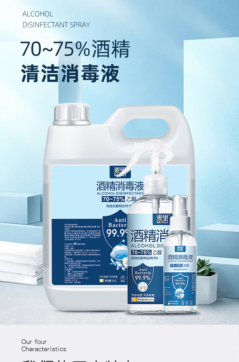 Спиртовое дезинфицирующее средство 75% спиртовой спрей большая бочка портативный бытовой Быстросохнущий одноразовый дезинфицирующий дезинфицирующее средство на этаноле в помещении