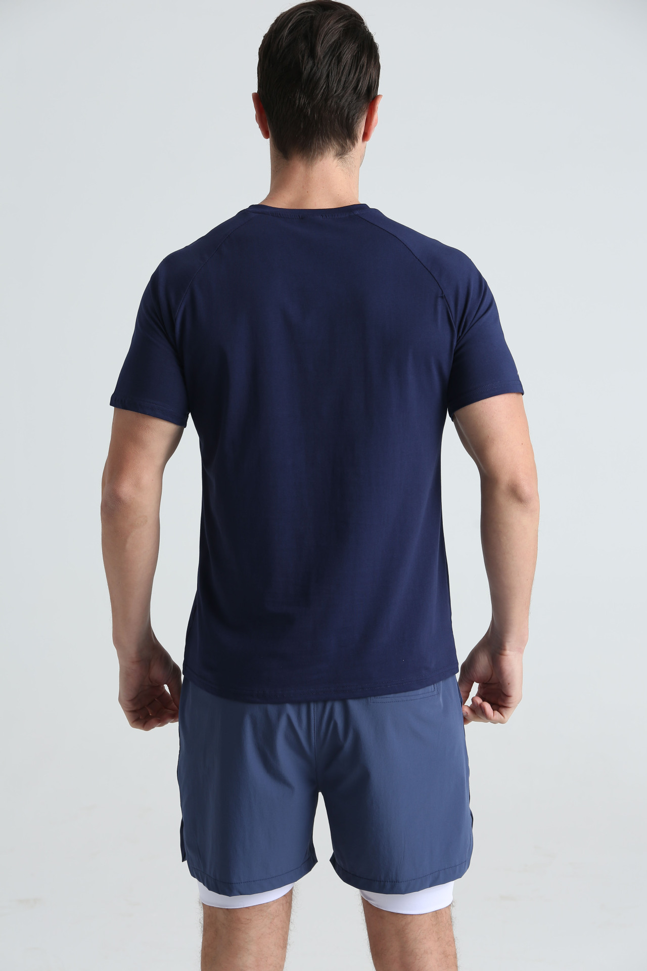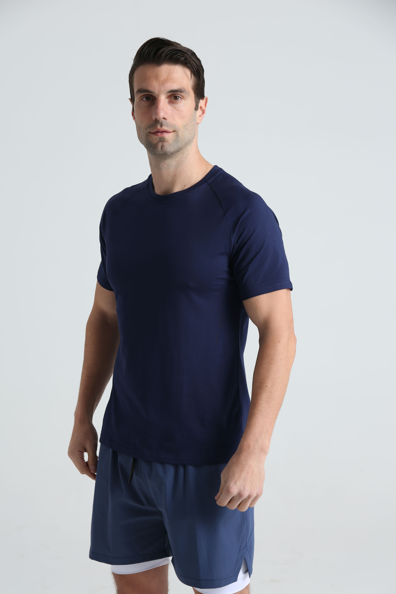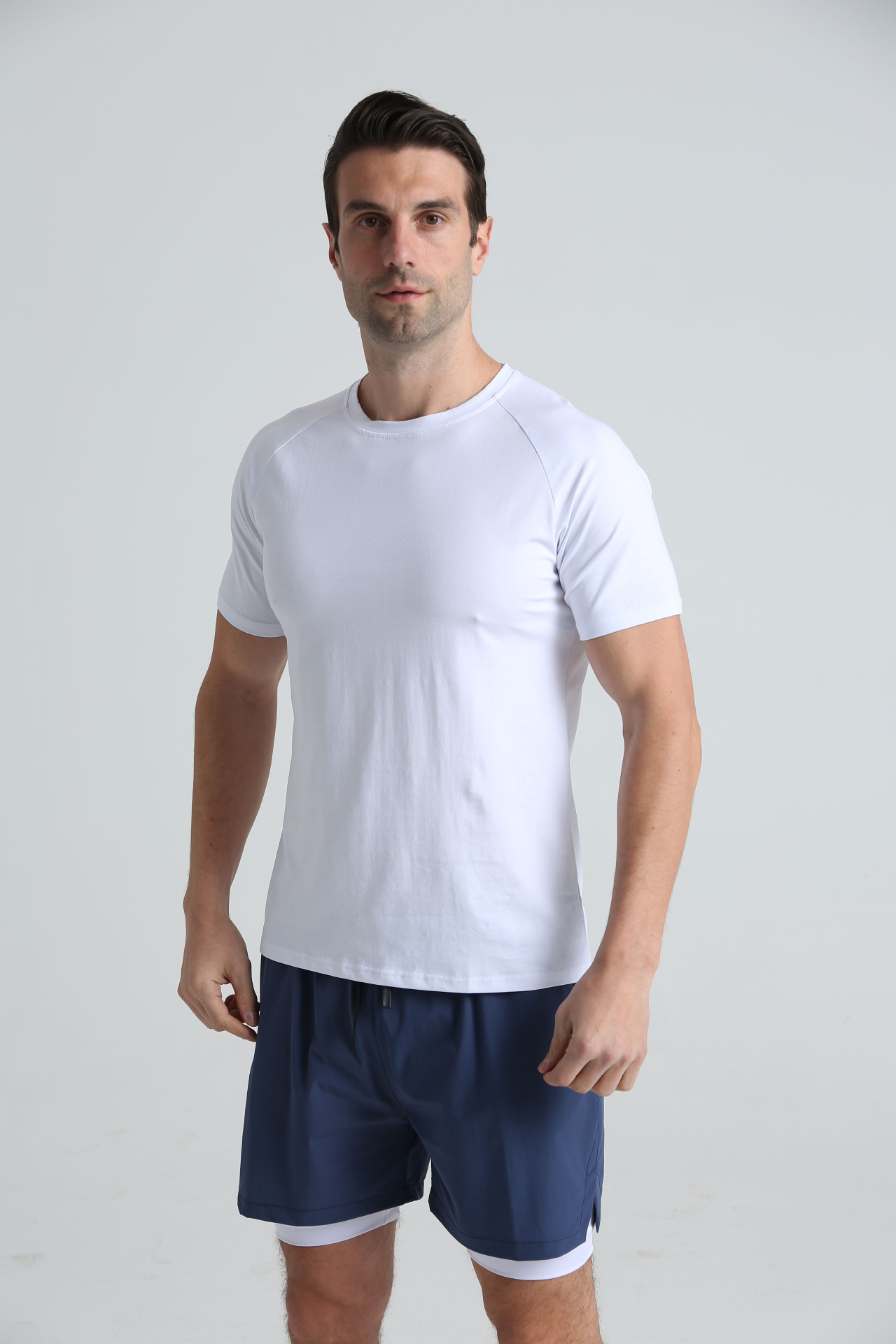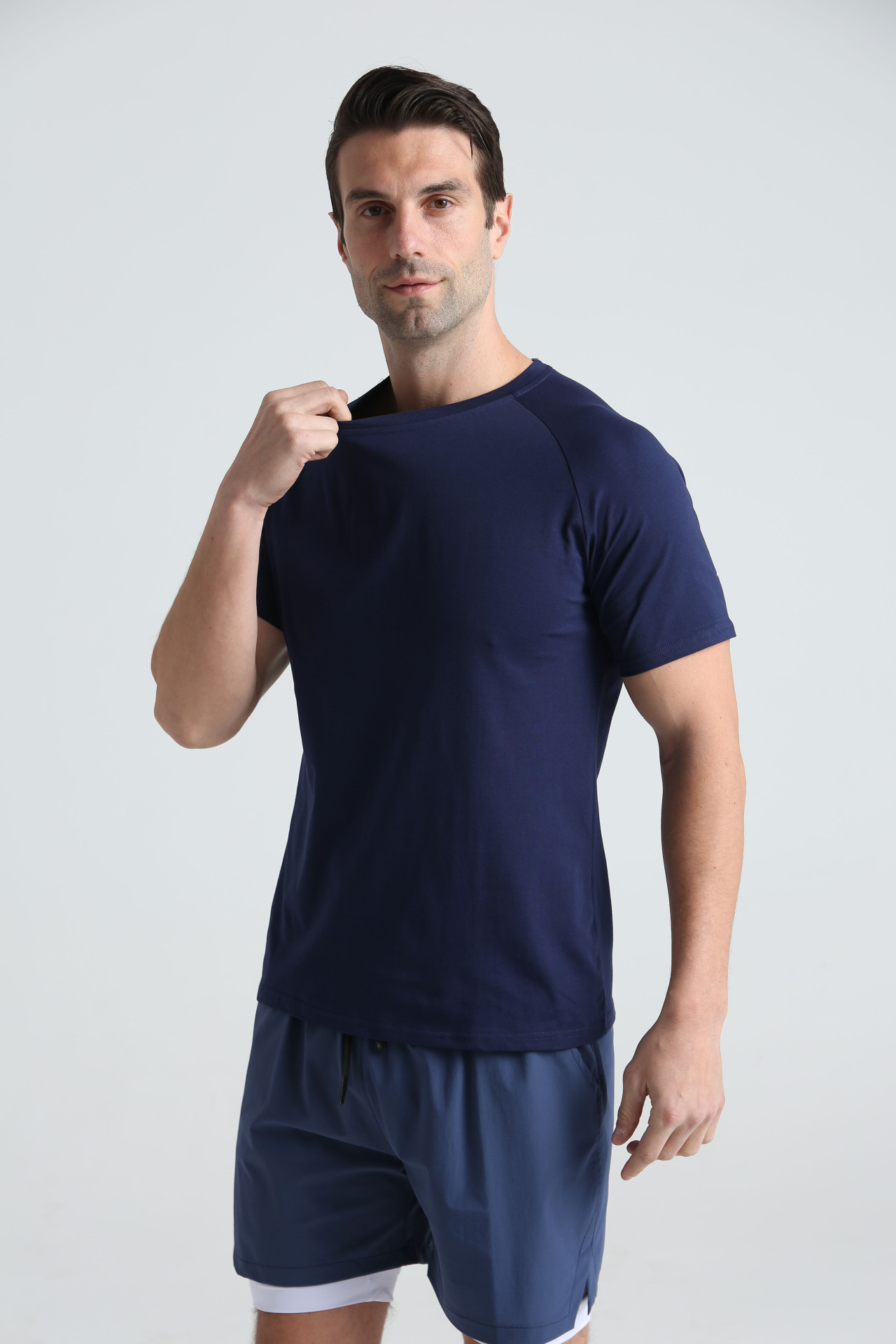 Летняя Европейская и американская спортивная мужская хлопковая однотонная Повседневная футболка больших размеров с короткими рукавами и круглым вырезом для тренировок